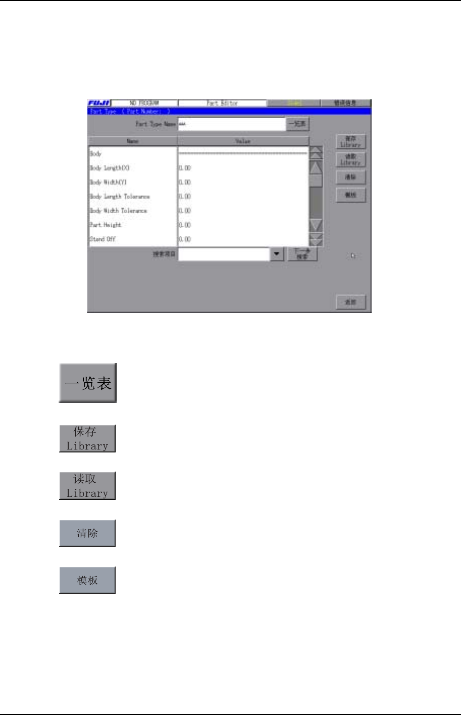 第 3 章 编辑器 第 3 部 XP-142E 系统手册 3-3-26 Edition 1.0 项目 检查 是搜 索 并显示指定的数据名 称 。选 择 黑色 下 拉 键显示 分 类目 录 , 也可以直接从 键盘输入数据 名 称 来 搜 索 。选择 [ 下一 步 搜 索 ] 键以从上 至 下的方向进行搜 索 。 项目说明 Part T ype Name 以最大 30 字符的文字串指 定元件种类名。 注意 ) 以下字符不能用于文件名 : (…
