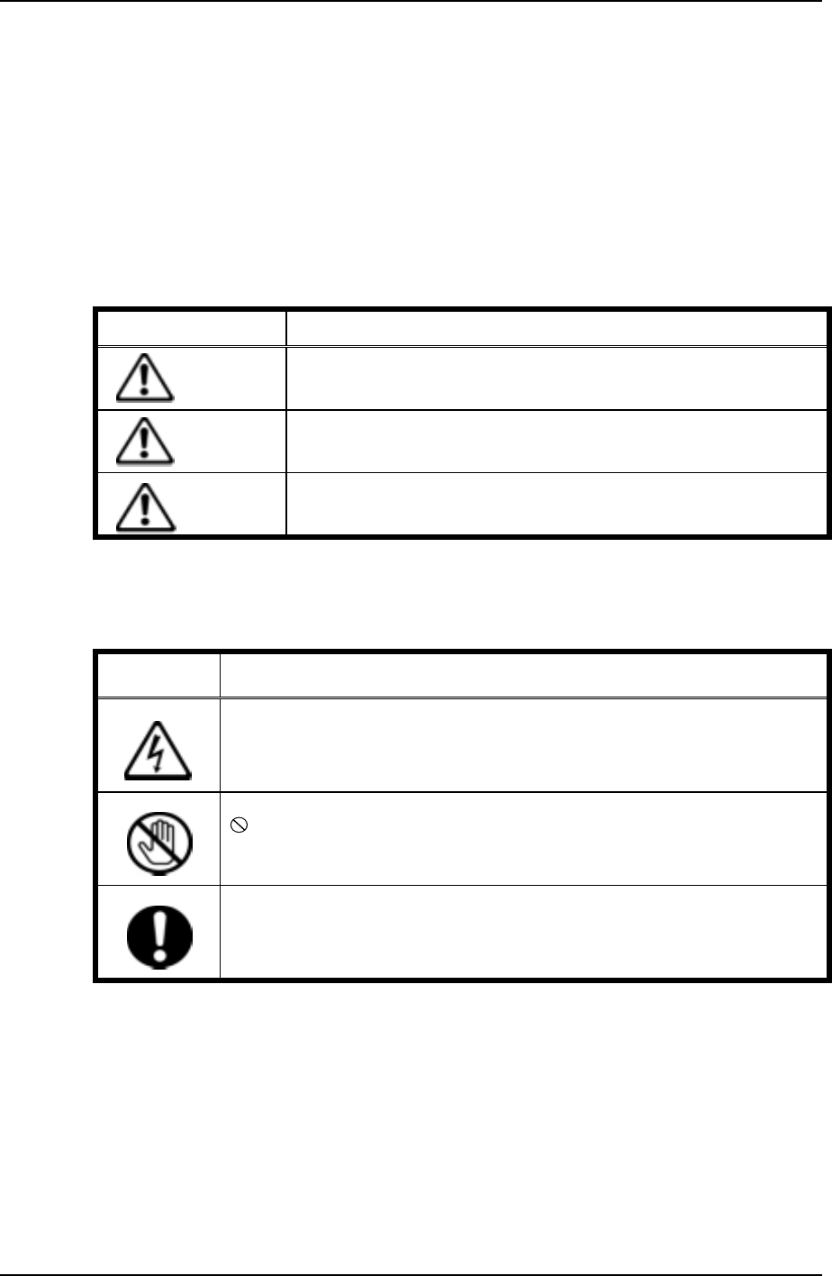 在本书以及机器上的警告标记的注意说明中,使用了危险度的定义(危险度的大小)以及图标