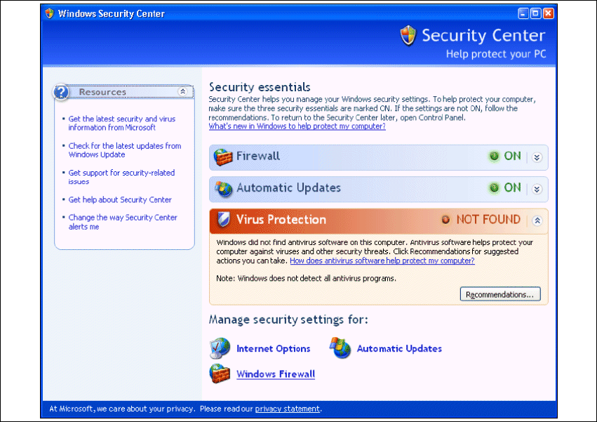 Fig. 3 - 29 Windows Security Center