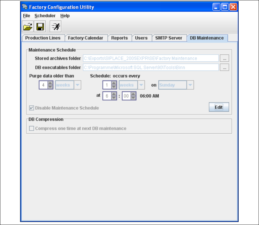 4 Configuration Installation and Configuration Guide SIPLACE Explorer 4.2 Configuring the Factory Configuration Utility Edition 08/2008 EN 94 4.2.7 DB Maintenance Define the maintenance sched ule for the factory datab as…