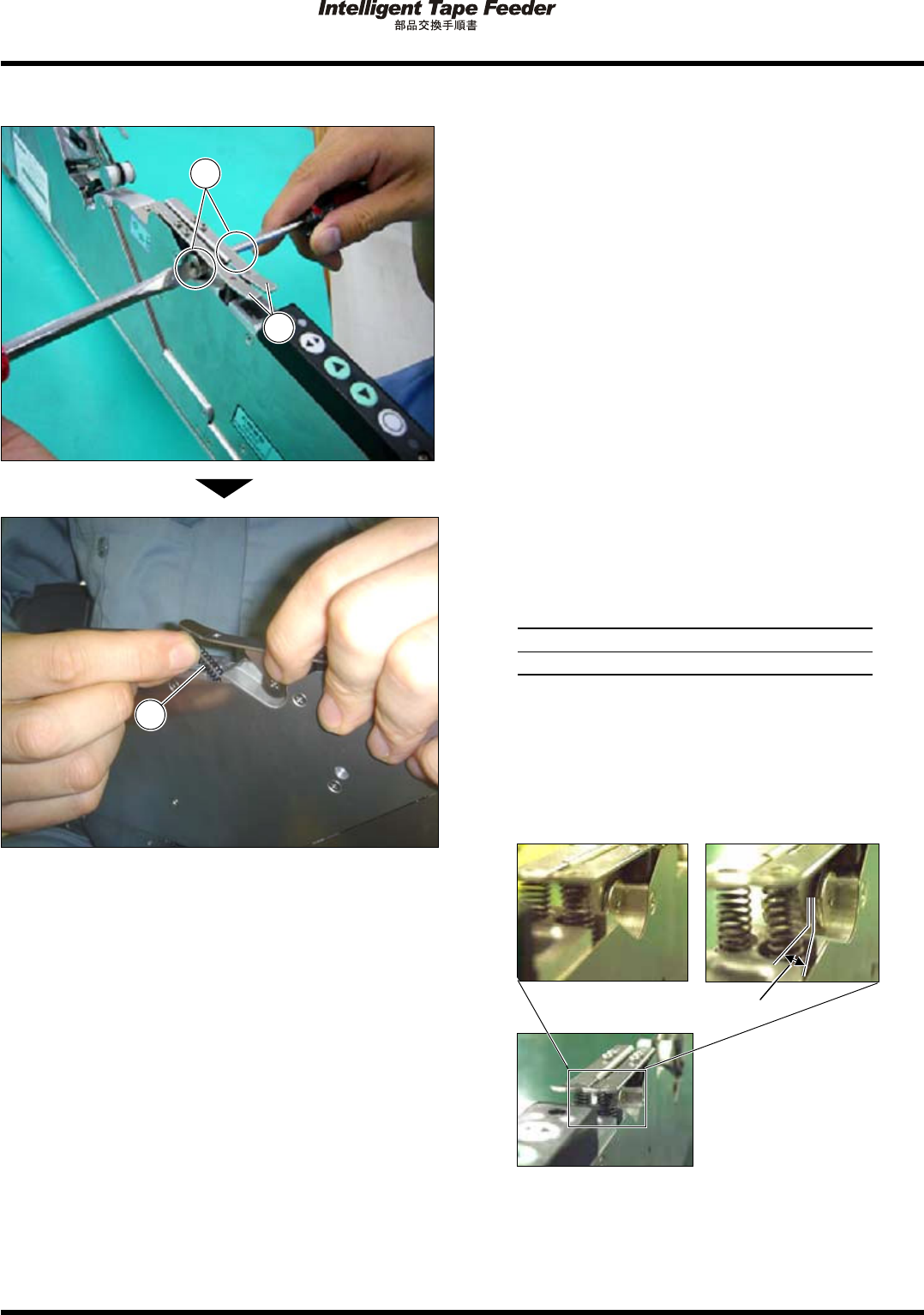 1.7 引込みレバー部バ ネ Pa ge 1- 24 取り付け 1. R 側 /L 側の引込みレバー を取り付け、 固定ビス を仮締めする。 2. R 側 /L 側のバネ を入れ込む。 3. 固定ビスを本締めして固定する。 締め付けトルク 100 N cm ( ± 10 N cm ) ∗ L 側 /R 側共すき間を写真 a のように締め付け てください。 写真 b のように締め付け た場合、引 き込みレ バーの動…