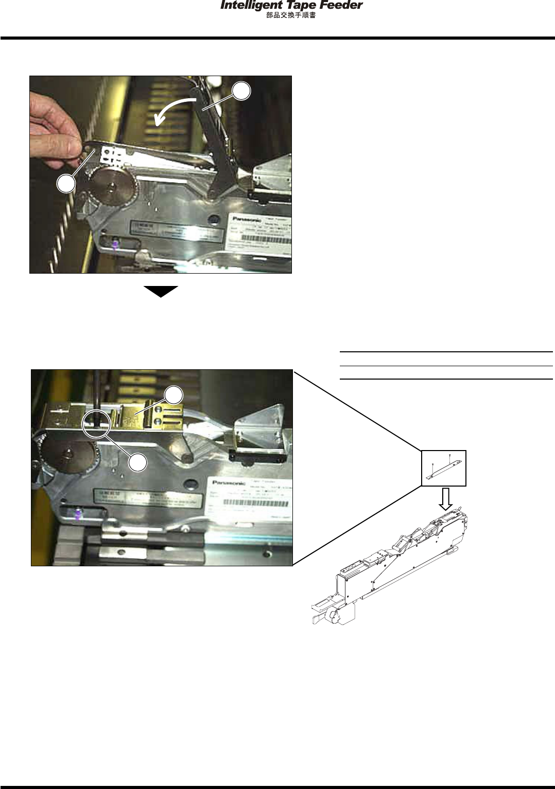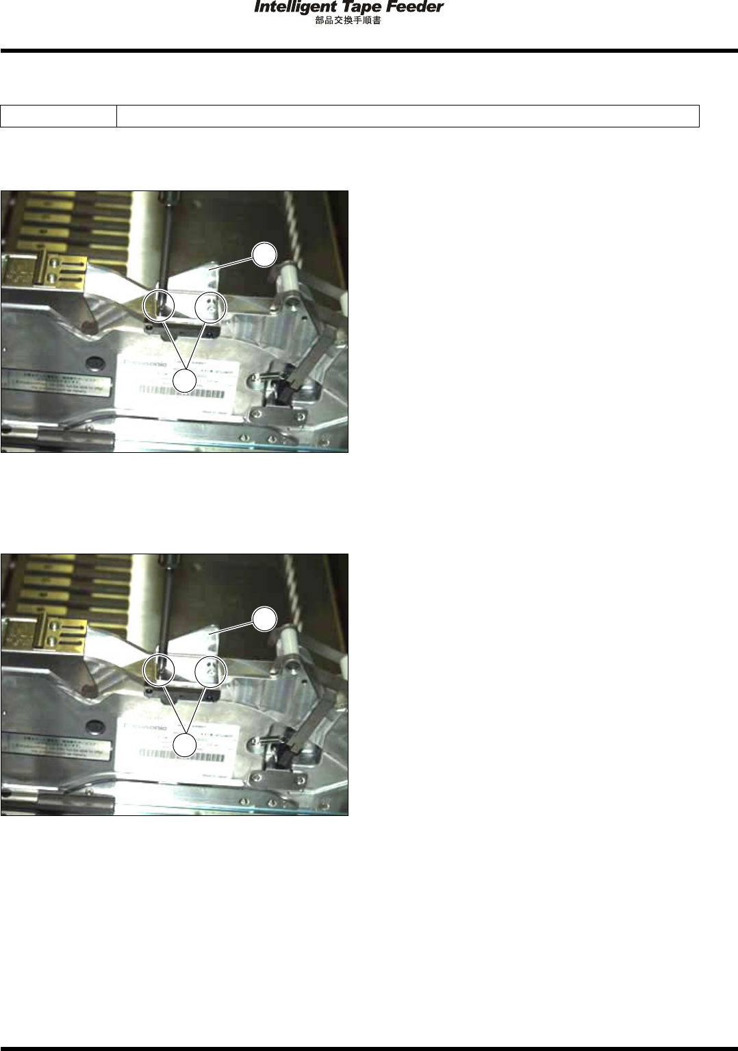 2.4 テープガイド Pa ge 2- 12 2.4.2 キャリアテープ搬送ガイド 使用工具 プラスドライバ ( ビット No. 1) 取り外し 1. テープガイドの固定ビス (2 か所 ) を取 り外し、テープガイド を取り外す。 取り付け 1. テープガイド を取り付け、固定ビス (2 か所 ) で固定する。 INTF-2 16P 2 1 INTF-2 16P 2 1 INTF- J-PEA02- A01-0…