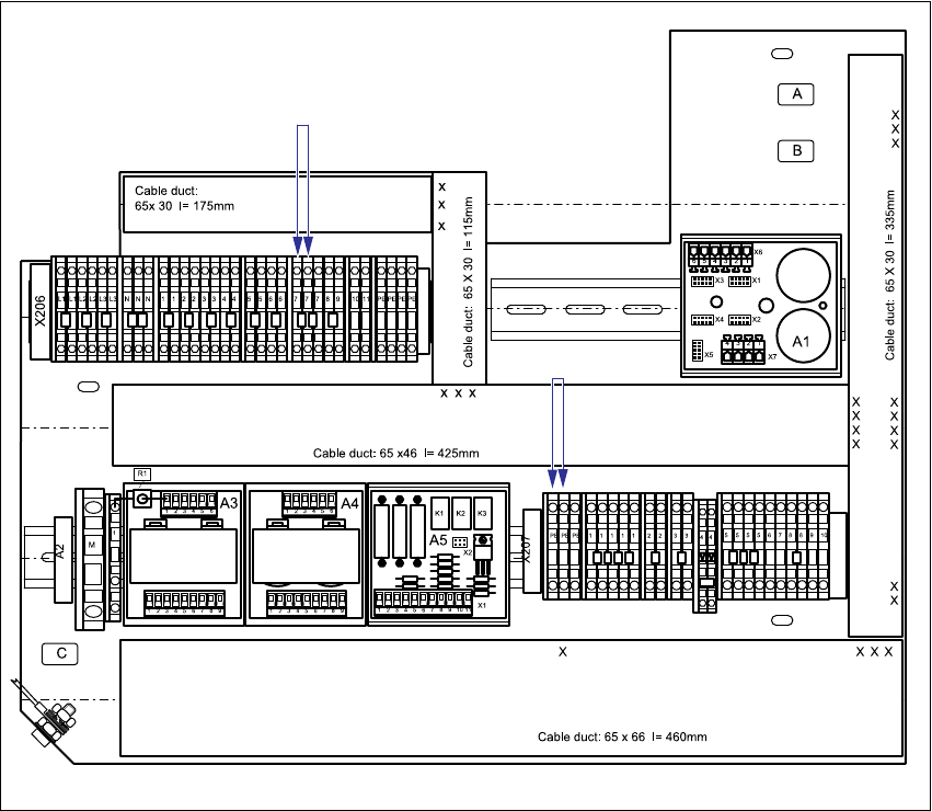 X206:PE and X207:7 in the "Voltages" terminal panel. These jumper cables are then recon-
