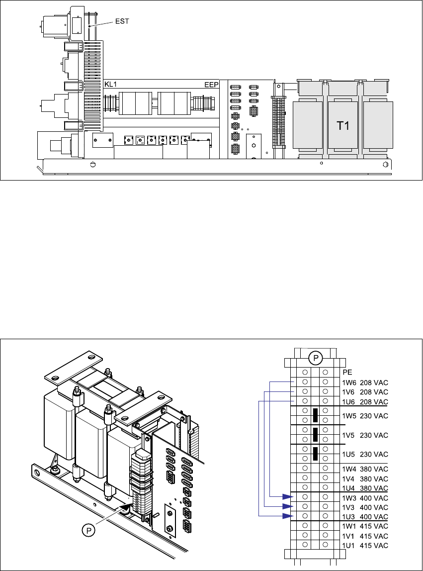 7.6.6 Converting the three-phase transformer T1 from 3 x 208 VAC to 3 x 400 VAC