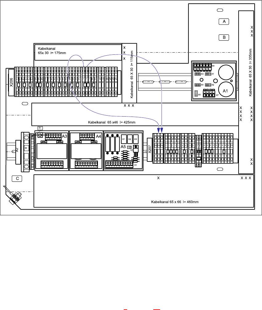 an den Klemmleisten X206:PE und X207:7 angeschlossen. Diese Brückenkabel werden dann