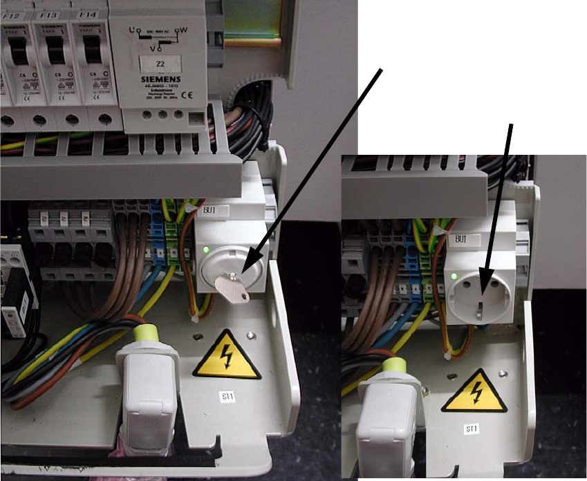 Montageanleitung Stromversorgung umrüsten 8 Stromv ersorgung an HS-XX / Di mit PKE32/XTU-32 umrüsten Ausgabe 12/2013 8.6 Stromversorgung von 3 x 208 V~ auf 3 x 400 V~ umrüst en 137 8.6.3 Steckdosens chutz aus Schutzkont …