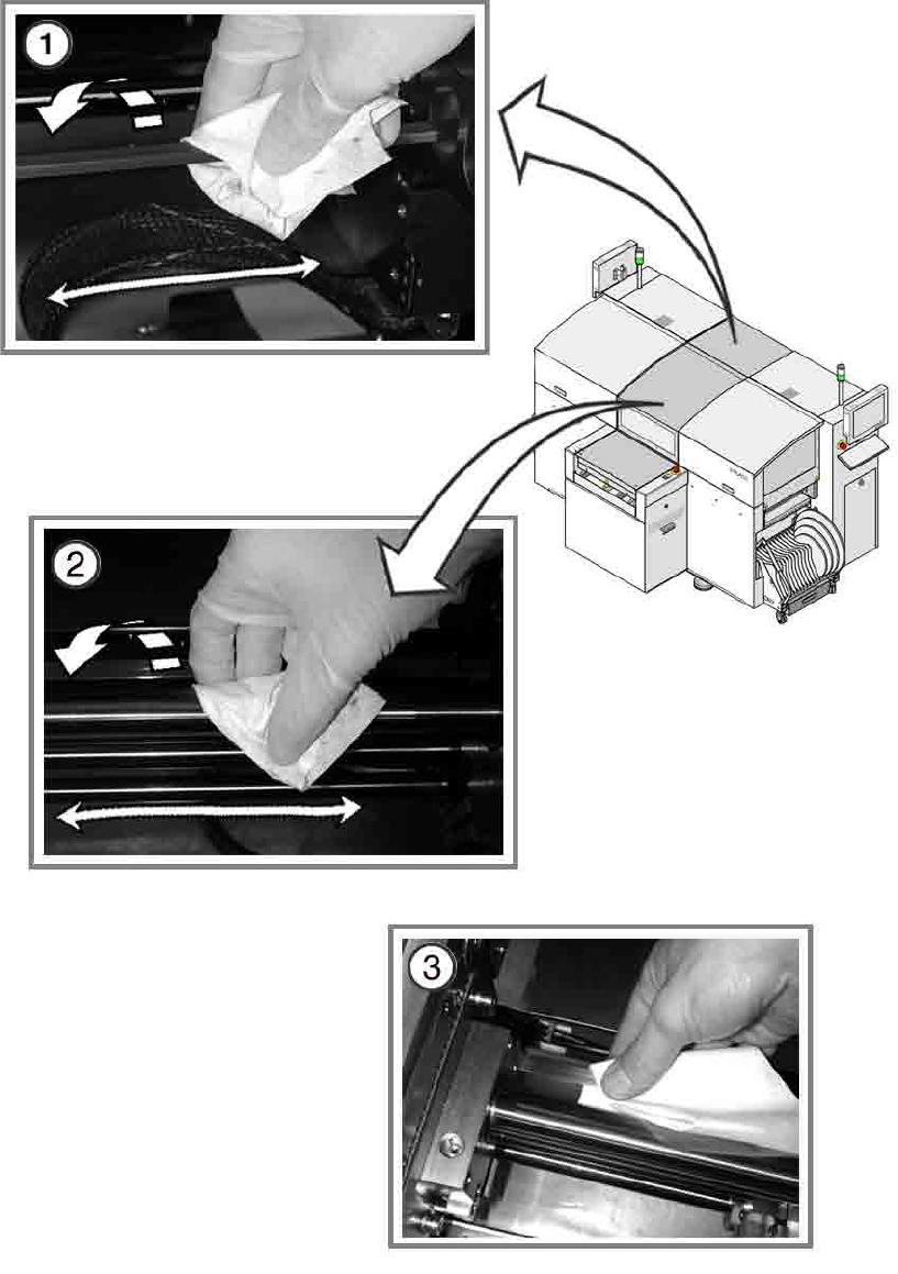 (2) 用 SIPLACE 清潔紙巾清潔、潤滑導槽的滑動表面。
