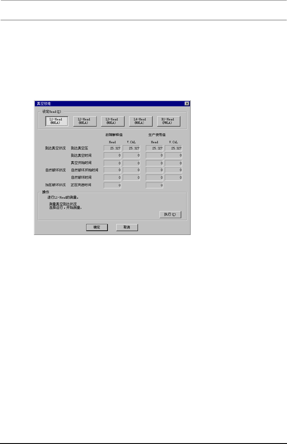 自我校准时,与 MS 参数相同,在“真空达到情况”、“自然破坏情况”以及“加压破坏情况”的各条件压力