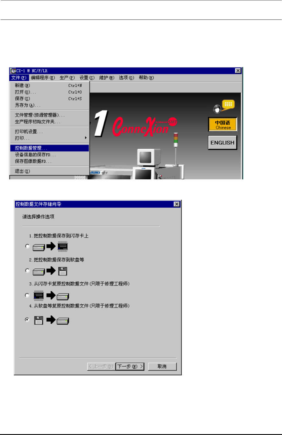 ② 控制数据文件存储向导被显示出来。这时,请选择「4.从软盘等复原控制数据文件」,然后选择下一步(N)。