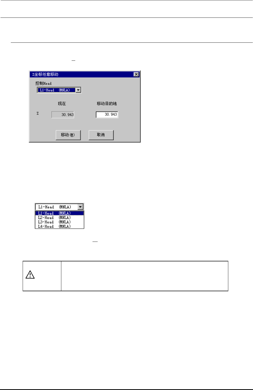 从控制坐标选择[Z 轴移动(Z)...]之后,下述Z坐标任意移动画面被显示出来。