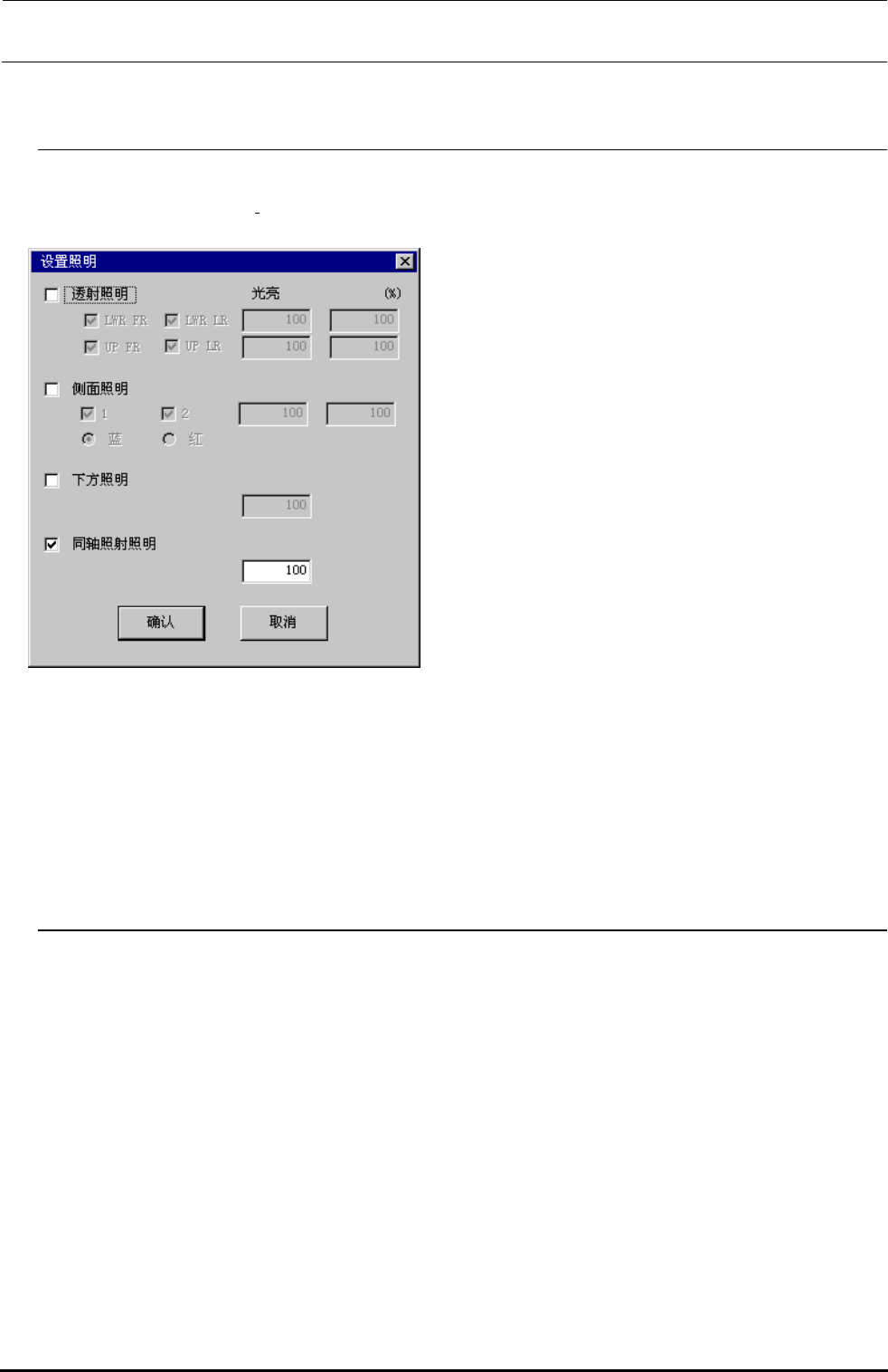 从控制菜单选择[设置照明(I)]。下面的设置照明画面被显示。