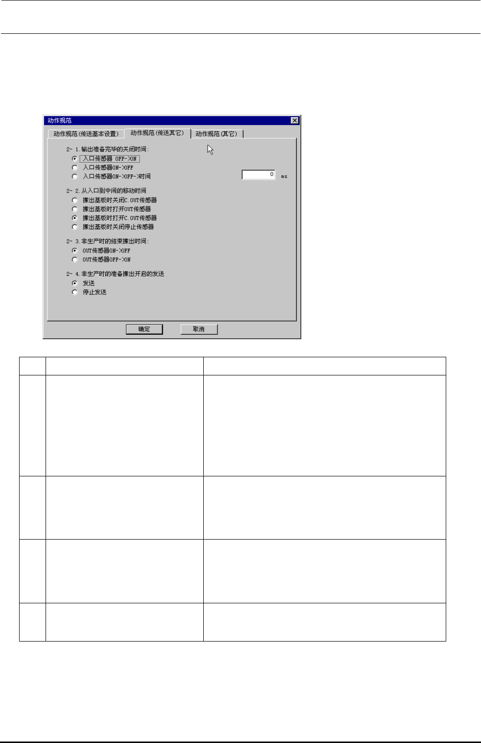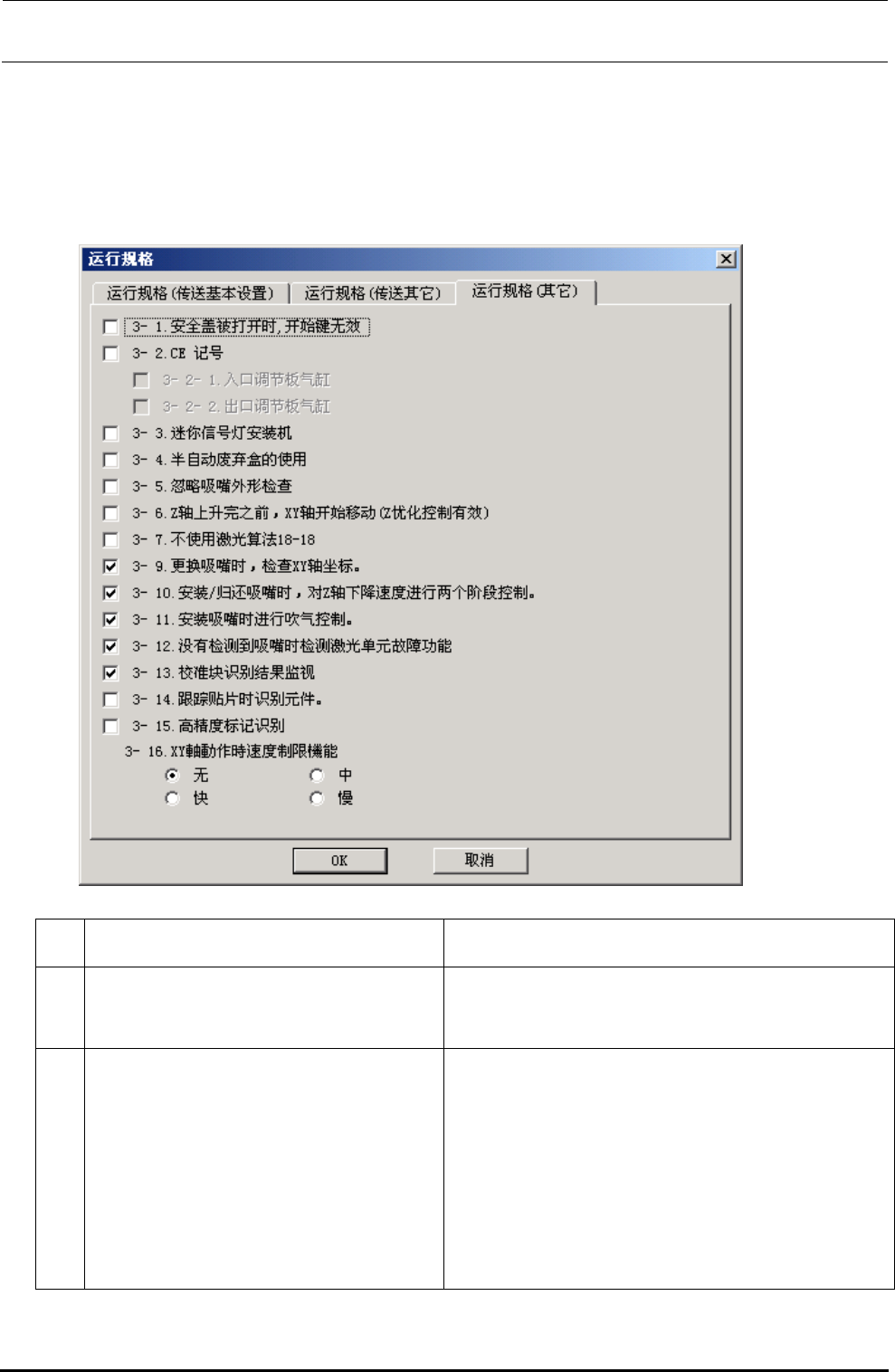 Rev.2.00 MS 参数 参 数 参 数 参 数 3-10 3-5 -3- 3. 3-5 -3- 3. 3-5 -3- 3. 3-5 -3- 3. 动 作规 范 动作 规 范 动作 规 范 动作 规 范 ( ( ( ( 其它 其它 其它 其它 ) ) ) ) 选择动作规范等之后,显示出下面的画面 。 各项目请用勾选择动作规范 。 No. 项目 设定 内容 1 3 -1 护罩打 开时 Start 开关无 效 护罩 打开时 的 STAR…