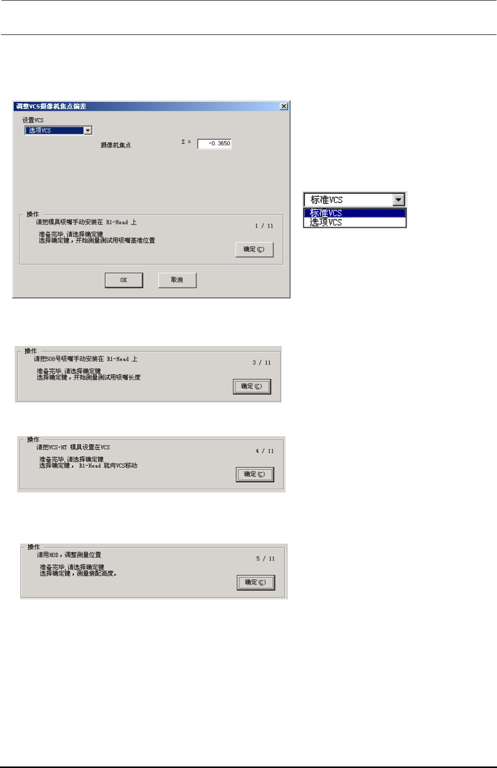 准备完毕,请选择确认。选择了确认之后,测定设定 VCS 的摄像机焦点位置。