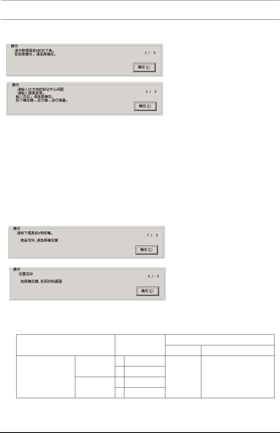 Rev.2.00 MS 参数 参 数 参 数 参 数 4-44 < < < < 操 作 操作 操作 操作 ・3/ 8> ・3/ 8> ・3/ 8> ・3/ 8> 示教空夹具板 B 的右下角。 作业结束后请选择确认。 < < < < 操 作 操作 操作 操作 ・4/ 8> ・4/ 8> ・4/ 8> ・4/ 8> 请输入夹具的 X 和 Y 方向标记间的距离。 请输入夹具的厚度。标记间的距离记载在 夹具的背面。 选择确认后, 轴即动作。 吸…