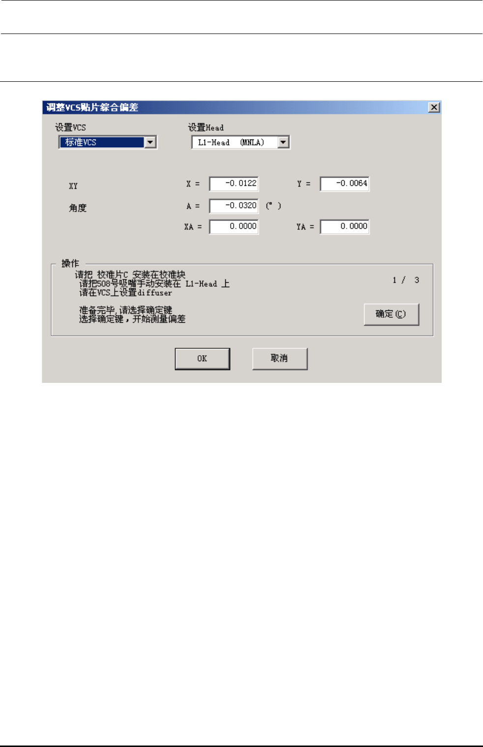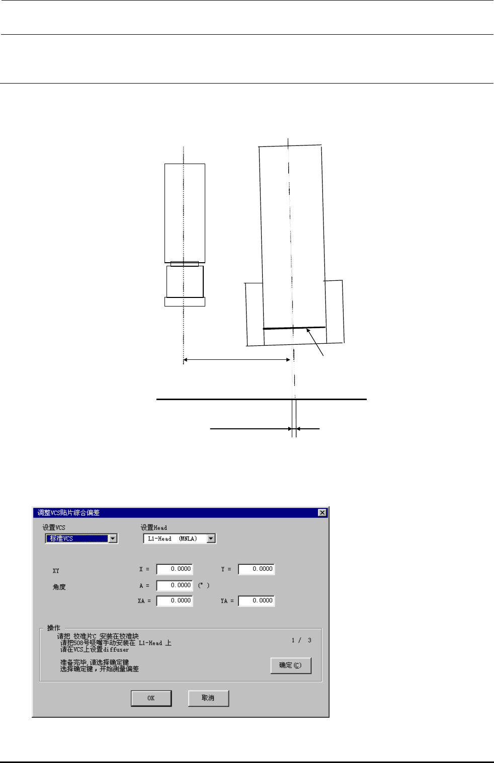 Rev.2.00 MS 参数 参 数 参 数 参 数 4-51 4-5.9. VCS 贴装综合偏差 贴装 头偏差是用激光传感器的高度取得贴装头的组装位置,贴装头倾斜的化,向贴装位置移动时贴装 头的坐标位置就会偏斜。 请把用影射玻璃基板测定的偏移量输入到各个项目中。 (参看『安装要领书』的「 20 安装时的贴 片精度调整程序」) OCC 贴装头 激光 搭 僘 组装角度 贴装头偏差