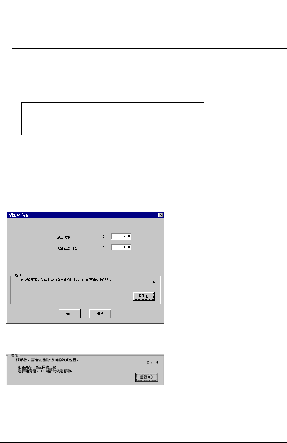 Rev.2.00 MS 参数 参 数 参 数 参 数 4-62 < < < < 操 作 操作 操作 操作 ・3/ 4> ・3/ 4> ・3/ 4> ・3/ 4> 通过演示, 求可动轨道内侧的 Y 坐标, 然 后按 HOD 的确定键 。 演 示 完 毕, 用 求的 Y 坐 标 计算 新 的偏 差 值 。 准备完毕,选择确认 。 < < < < 操 作 操作 操作 操作 ・4/ 4> ・4/ 4> ・4/ 4> ・4/ 4> 设定完毕 。 …