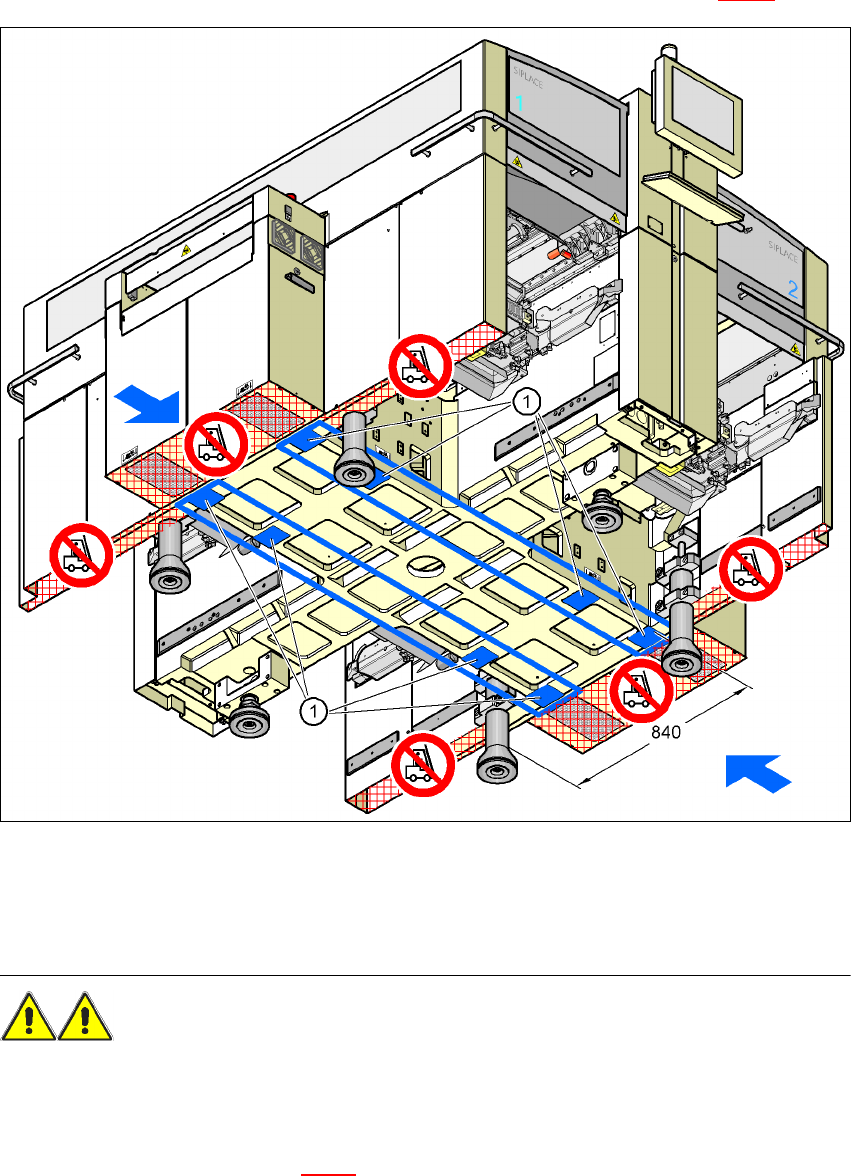 Æ Push the forks of the fork-lift under the placement machine, as shown in Fig. 4.4 - 1.