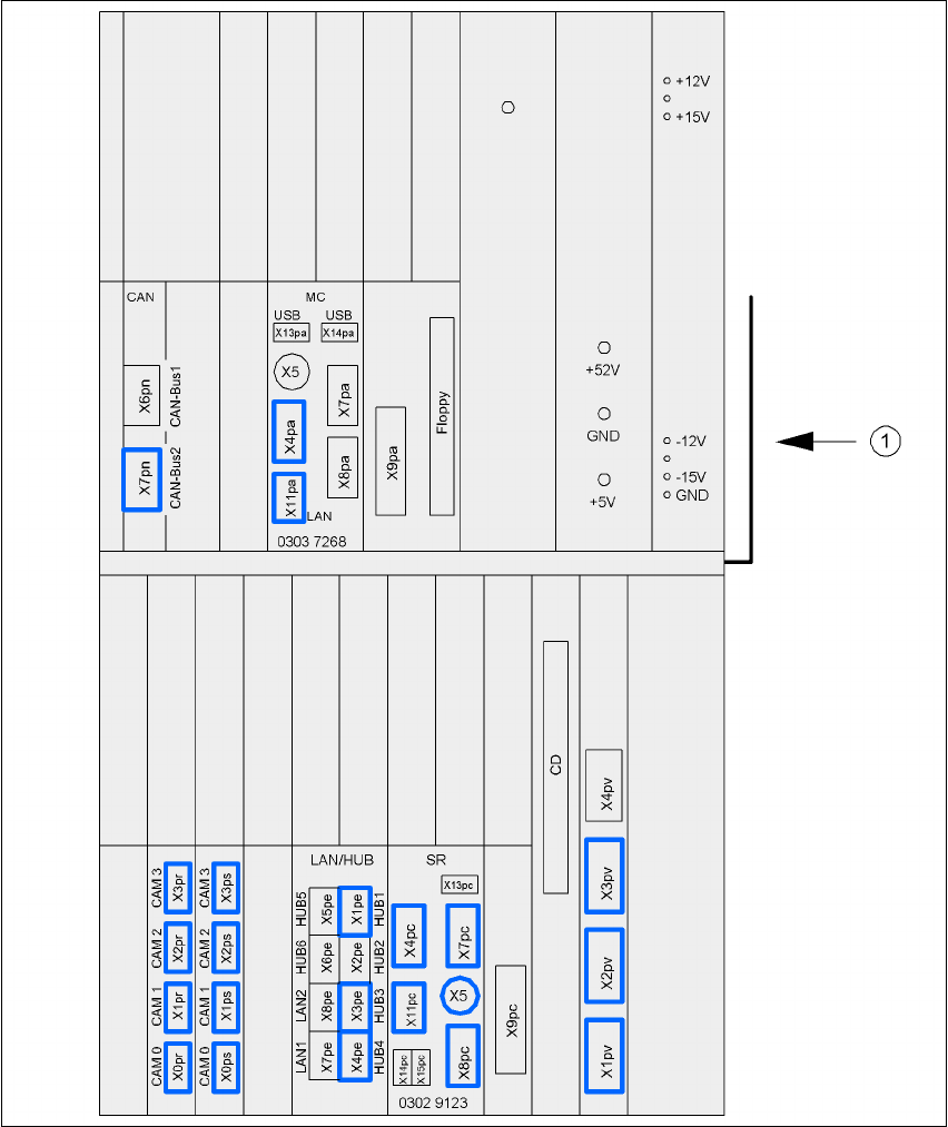 4.4.11.2 Computer unit X2, X3 and X4 - plug-in connectors on the front panel
