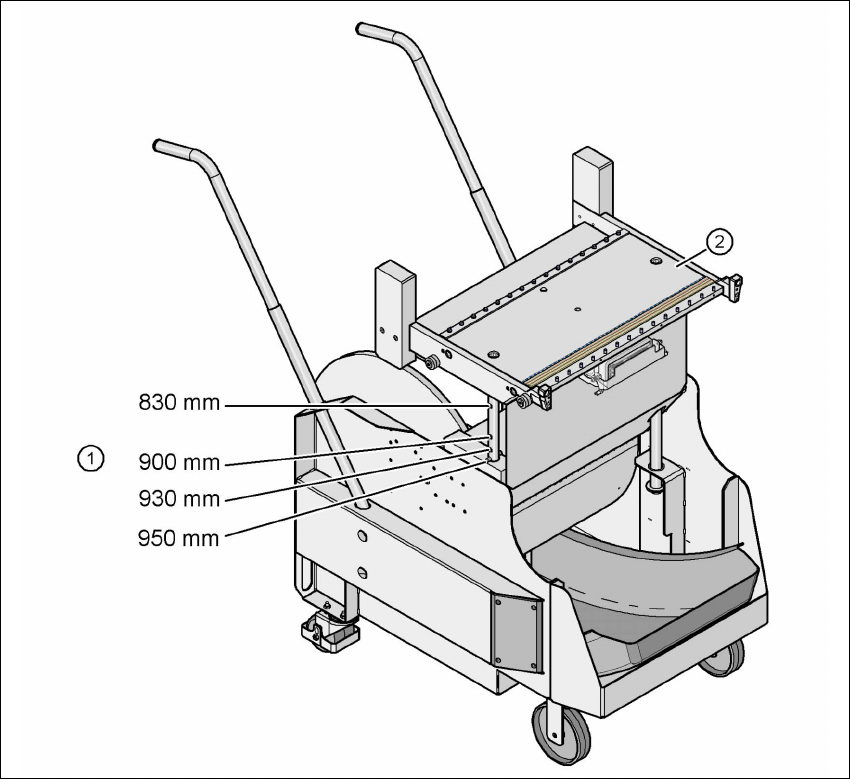 (1) Holes in the guide columns for the transport heights of 830 to 950 mm