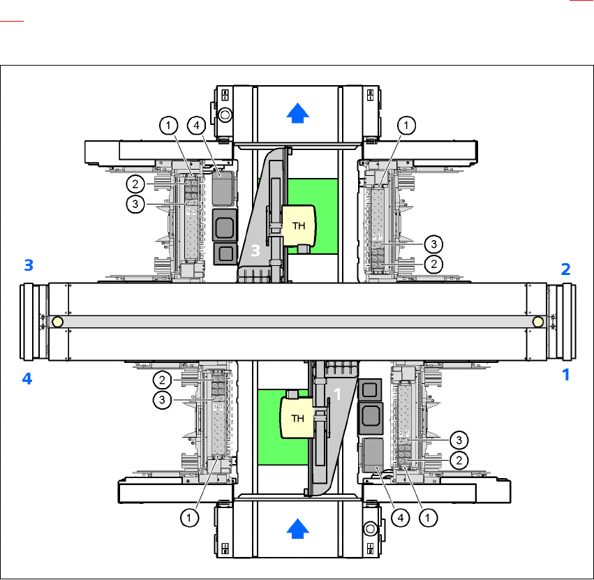 A nozzle changer for the TwinHead may be installed at locations 1, 2, 3 and 4 (item 1 in Fig. 7.1