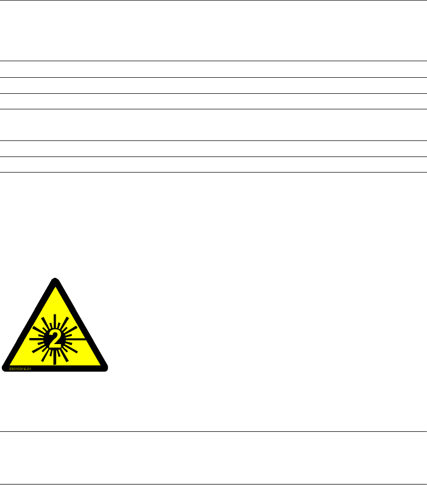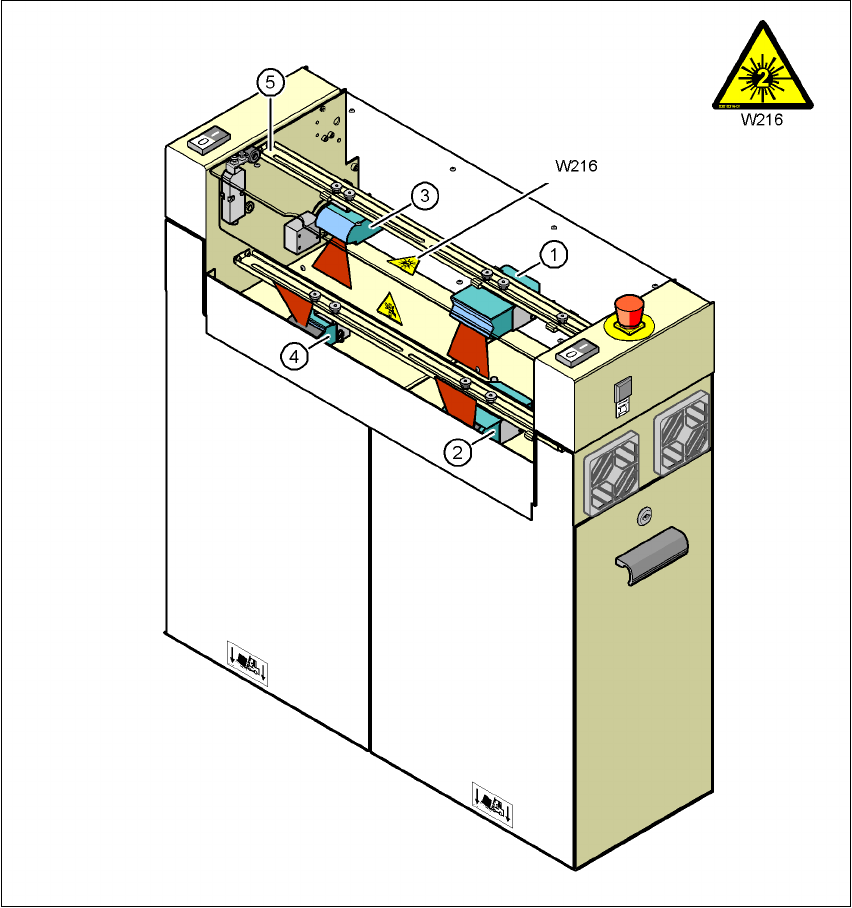 Warning label W216 "Laser class 2" on the cover of the PCB input side,