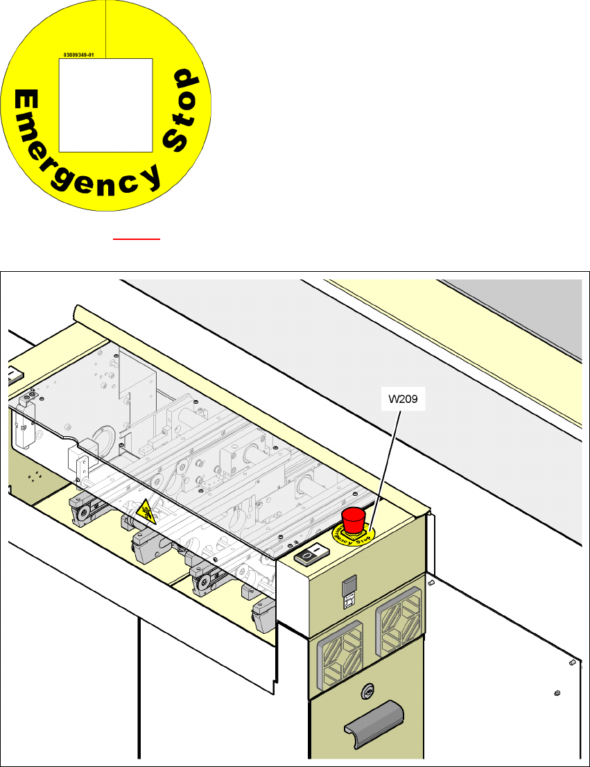 2.2.11 Warning label W209 on the emergency stop buttons