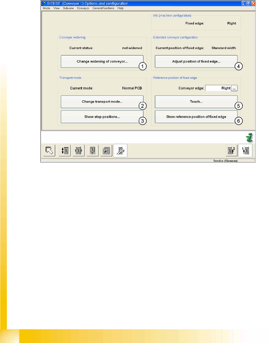 5. Point 5 and 6 only with Siemens Service password active! The fixed conveyor side (