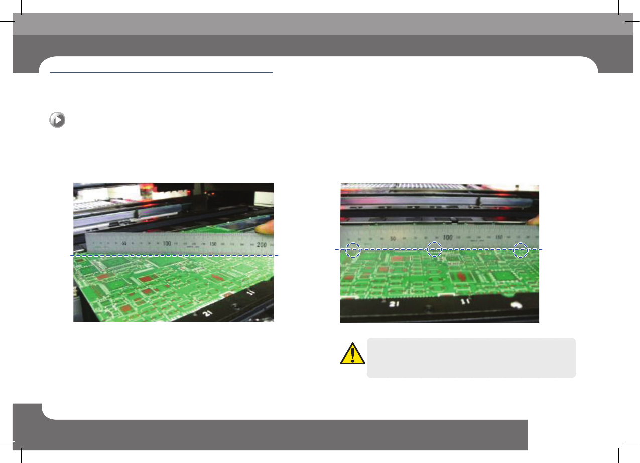 在Conveyor上装上 PCB并进行固定后,利用卷尺测定 PCB的平坦度。