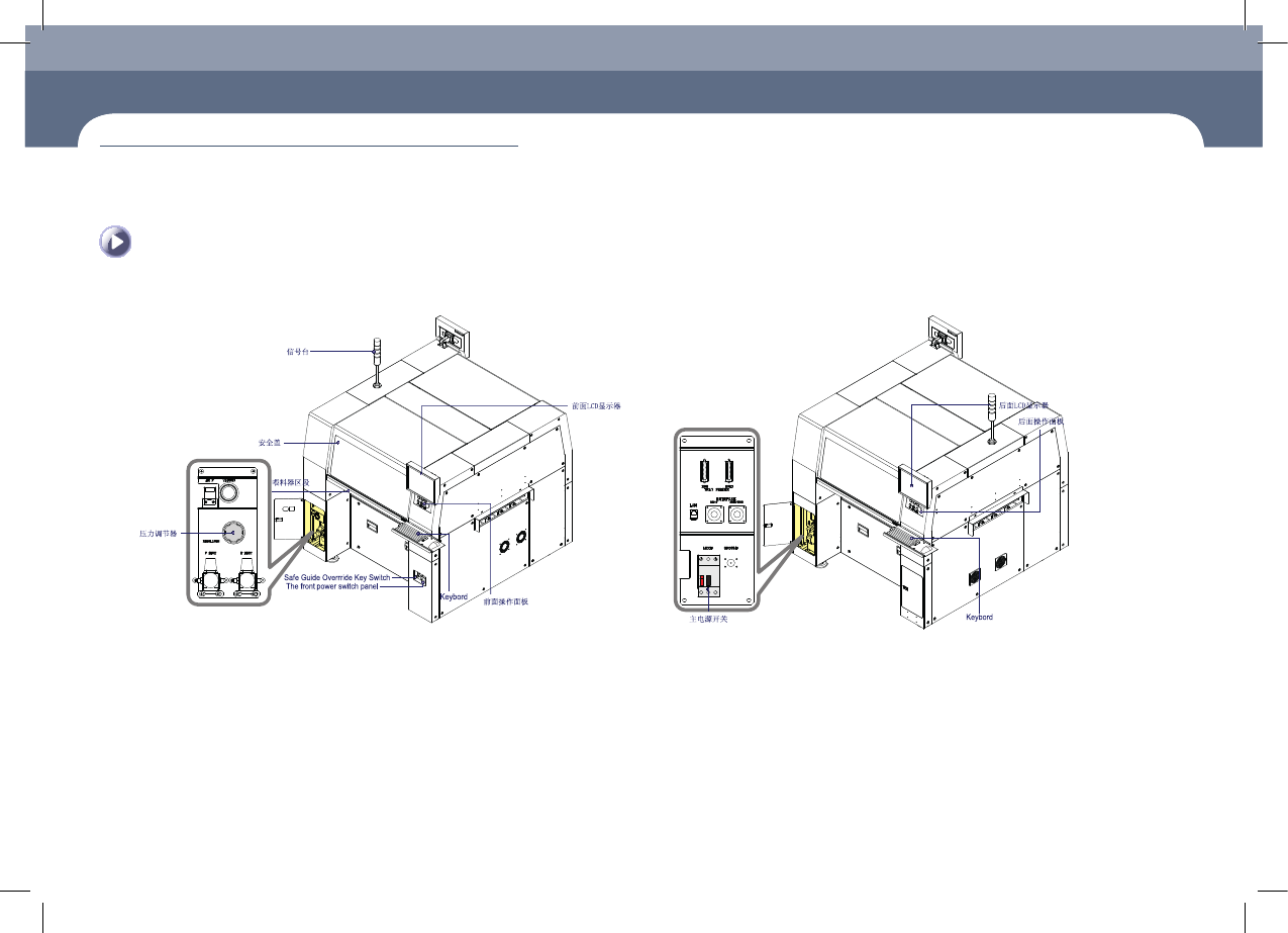 设备各部 分名称 Chap ter 1 本 Chapter 介绍设备、操作面板及 MMI ( Man - Machine Interface )。 设备概要 Multi - Functional Pla cer Operation Handbook 1-1 设备各部分名称 1. 设备前面 Chap ter 1 设备概要 本 Chapter 介绍设备、操作面板及 MMI ( Man - Machine Interface )。 2. 设备…