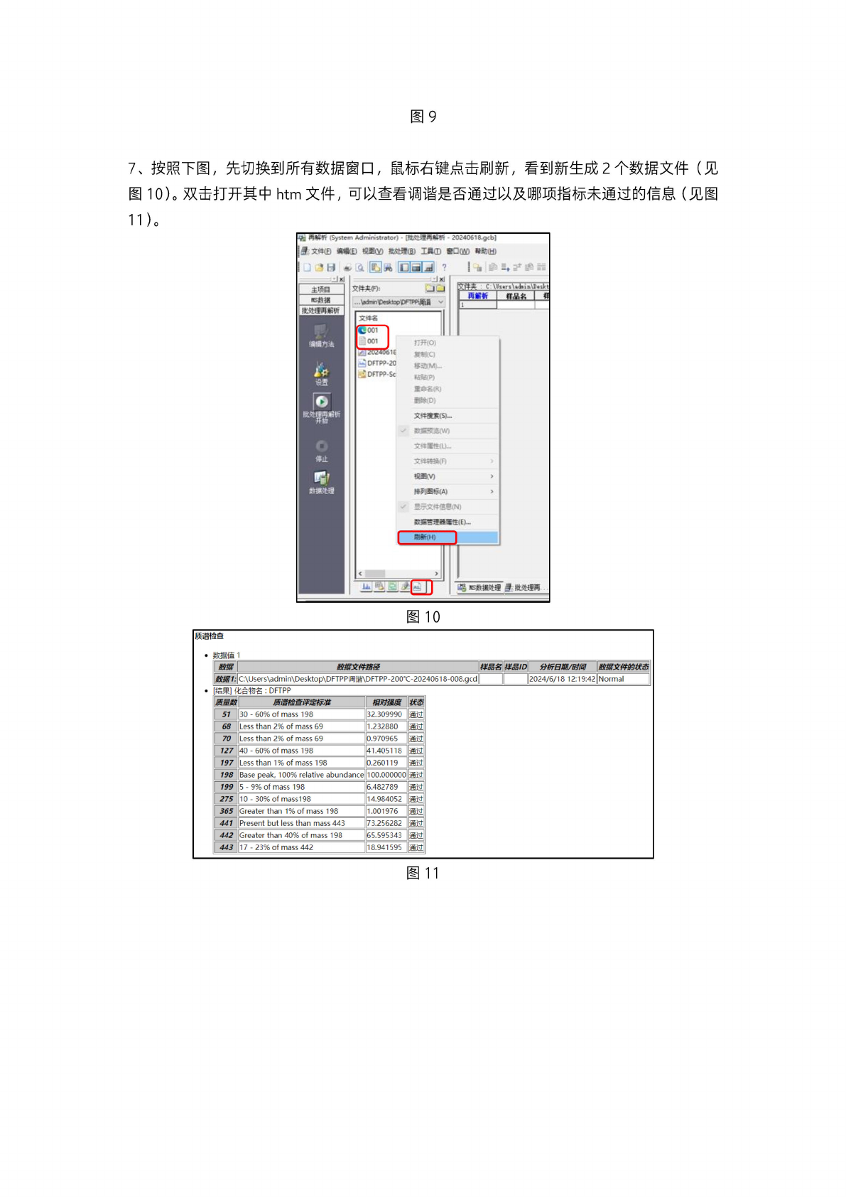 图 9 7 、 按照 下图, 先切 换到所 有数据 窗口, 鼠标右 键点击 刷新, 看到 新生成 2 个数 据文件 (见 图 10)。 双击打 开其中 htm 文件, 可 以查看 调谐是 否通过 以及哪 项指标 未通过 的信息 (见图 11)。 文件夹 伊): 西餐场 ...\#(^¥)esktopVF7Ppy^ Y 打开 9) 呼动 (M) 文件 携素 6)— ®H(V) 排列喃 A) 裁 开旨理 H 重性 (E)♦- 书 g MR …