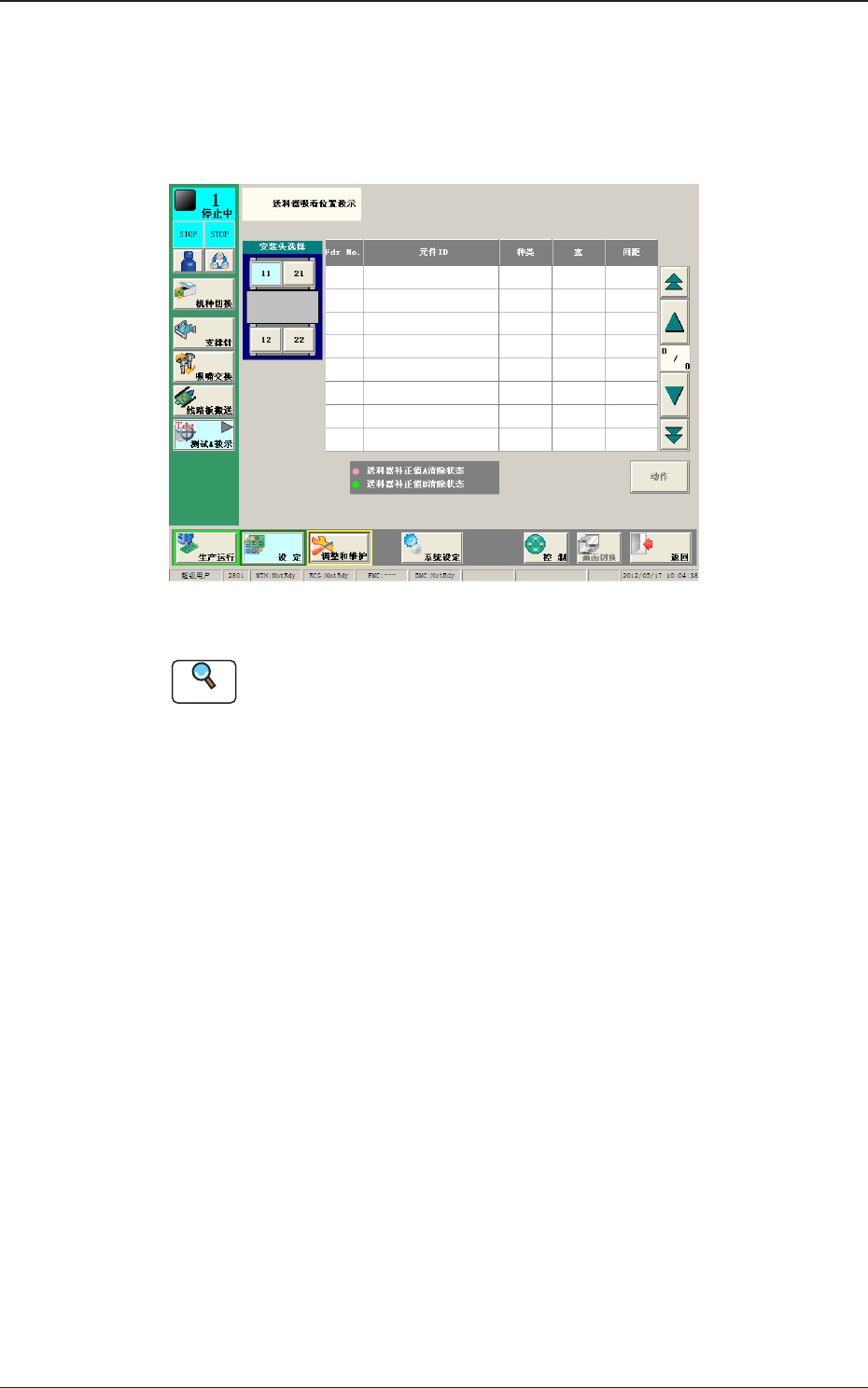 1OM-1732 3-2-14 1208-002 2.3 生产机种的切换 (7) 打开开闭盖。 注意 马达等负载电源处于 OFF 状态,但由于双手伸进装置内进行 调整作业,因此请充分注意安全。 (8) 用手指轻压线路板,确认支撑销位置是否有问题。 (9) 关闭开闭盖。 (10) 按生产运行界面的 [ 机盖 ] 按钮,打开开关灯。