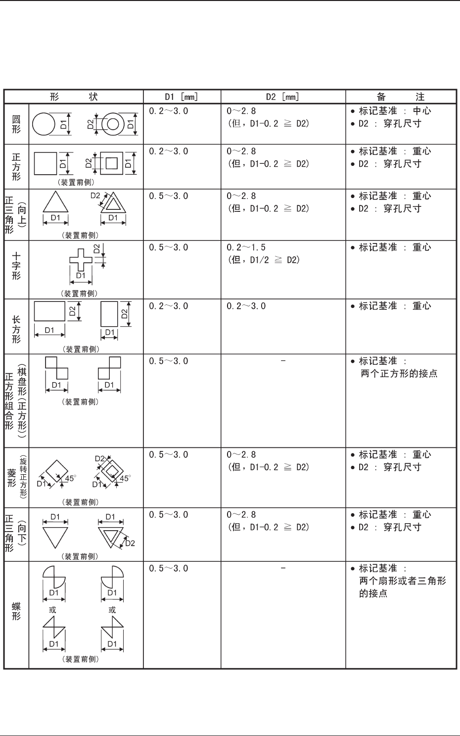 (a) 对于基准图形,标记尺寸误差须在 ±10% 以内。