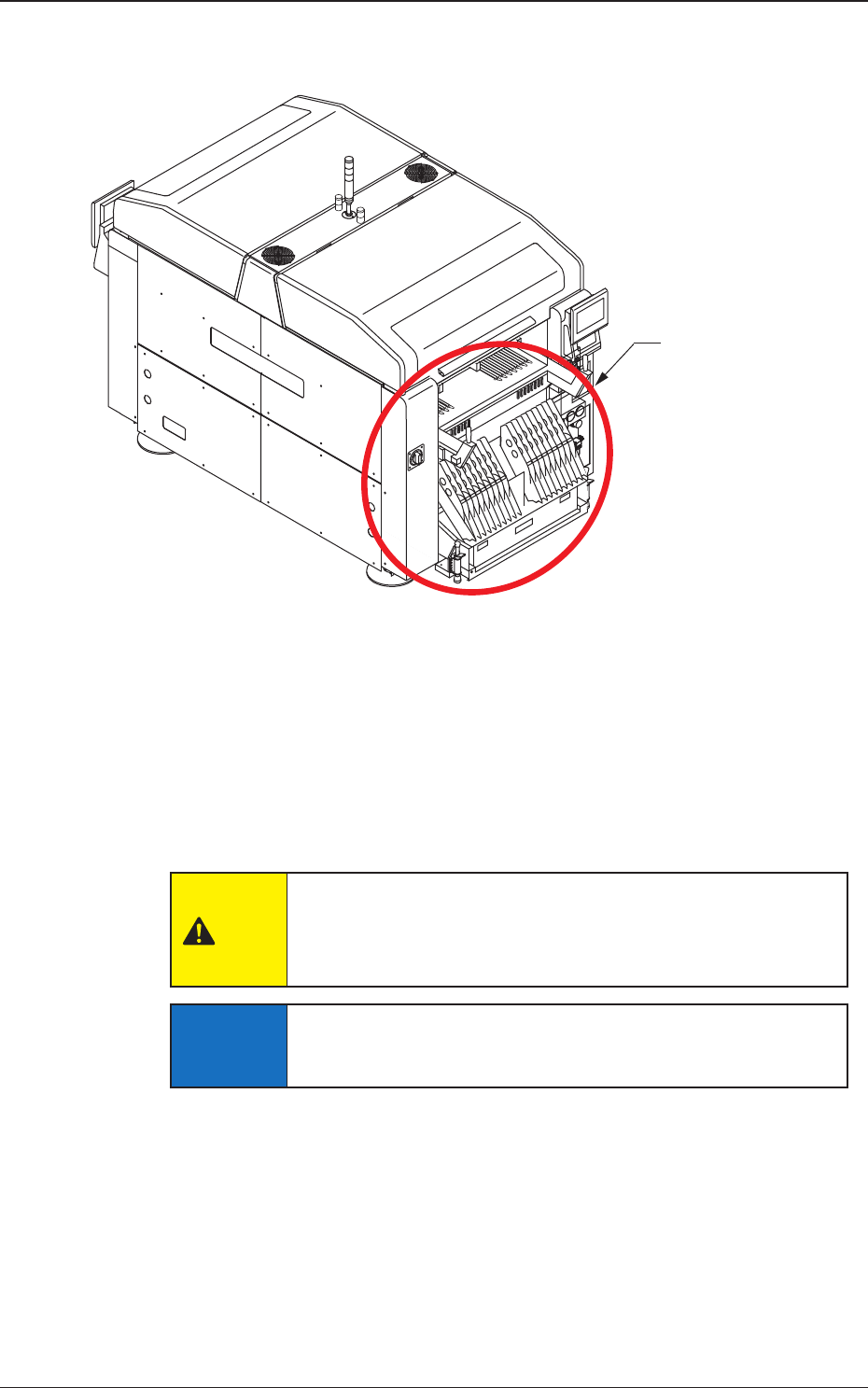 1OM-1732 1-3-6 3.6 吸嘴储料器部 为收纳吸嘴的机构。 安装头按线路板程序向吸嘴储料器上移动,装卸使用的吸嘴。 Note 在各模块装有可以标准安装的吸嘴储料器,高速吸嘴储料器时为 2 个。 搭载多个吸嘴储料器时对应为选购件。 高速吸嘴储料器 Fig.1A3-6 高速吸嘴储料器 Notice (a) 请不要在吸嘴储料器部放置异物。 以免装置发生故障。 (b) 请不要使磁铁等带磁性的物品靠近吸嘴。 以免在吸取元件、贴装元件时…