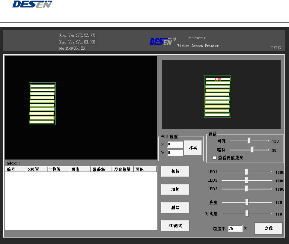 深圳德森精密设备有限公司 第四章 操作系统说明 37 4.2.11 选配功能 2D 操作界面,如(图 10-1 , 10-2 ) (图 10-1)