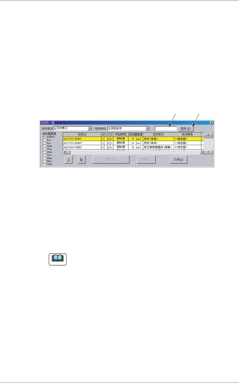 选择元件形状、元件种类、送料器宽度,可集中显示满足条件的元件