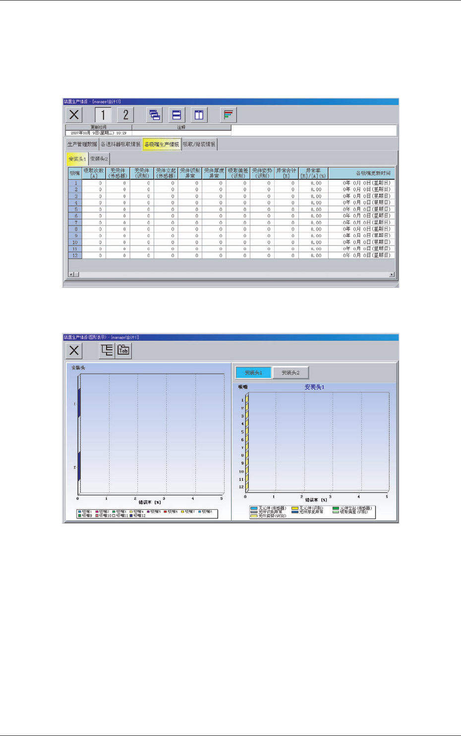 分别显示各安装头 / 吸嘴的吸取情报。