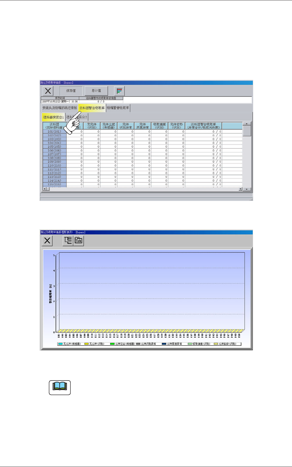 根据运行参数设定中指定的吸嘴警告吸取率,显示各吸嘴所管理的吸