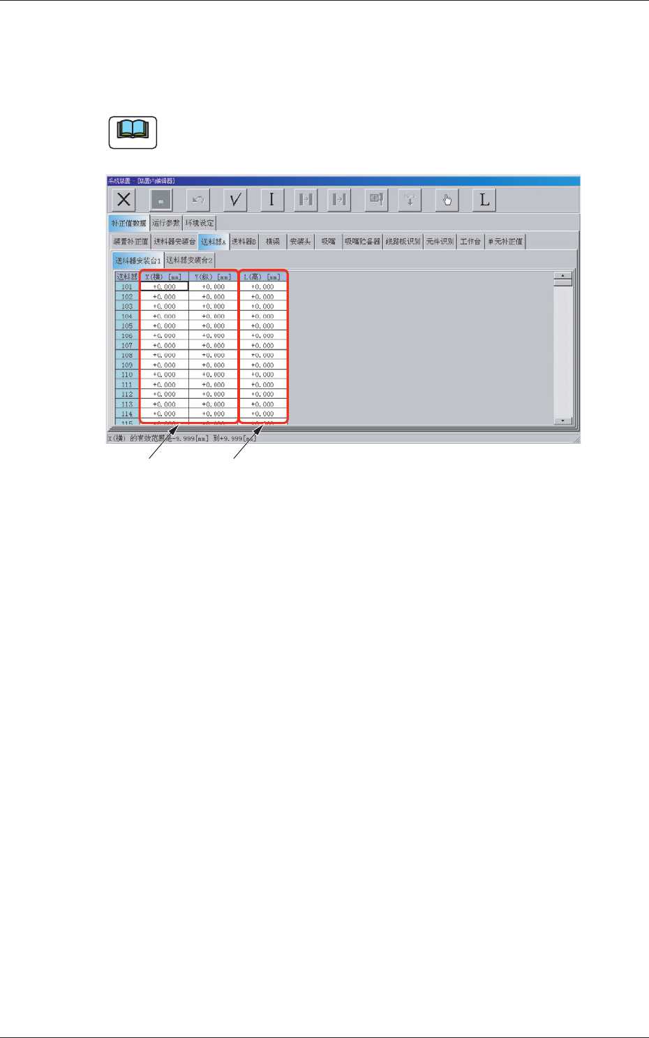 2.1.3 送料器补正值 A 及送料器补正值 B