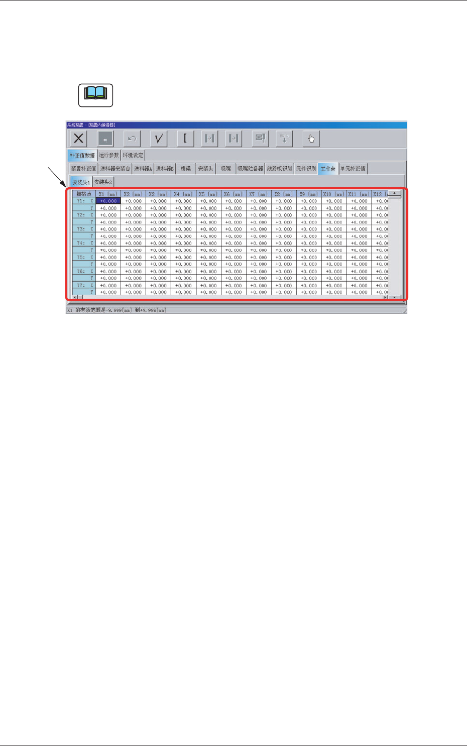 安装头 1 从线路板定位基准移动到各栅格点 (X 方向 :X1 X30、Y