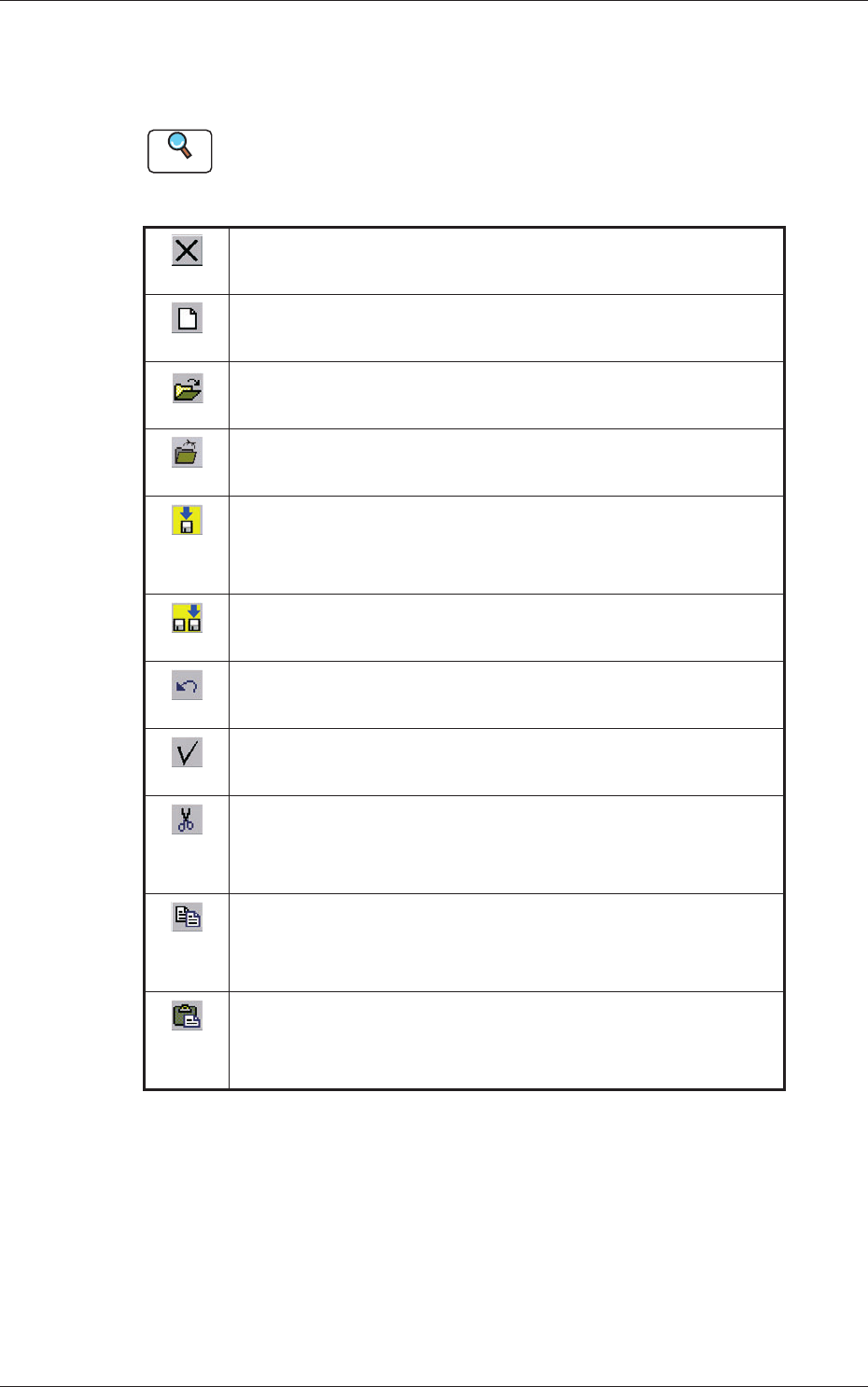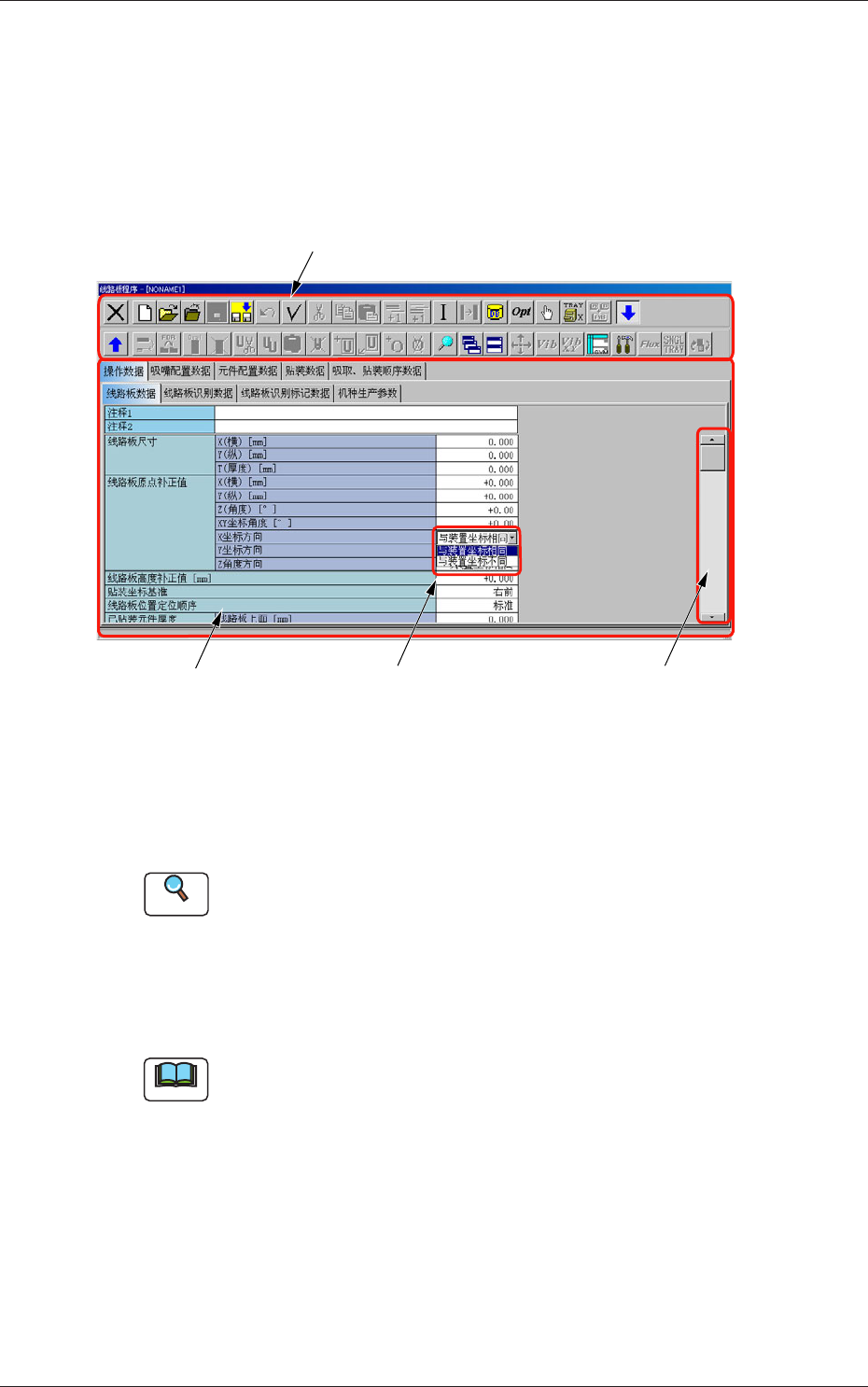 说明数据编辑界面的基本图标。