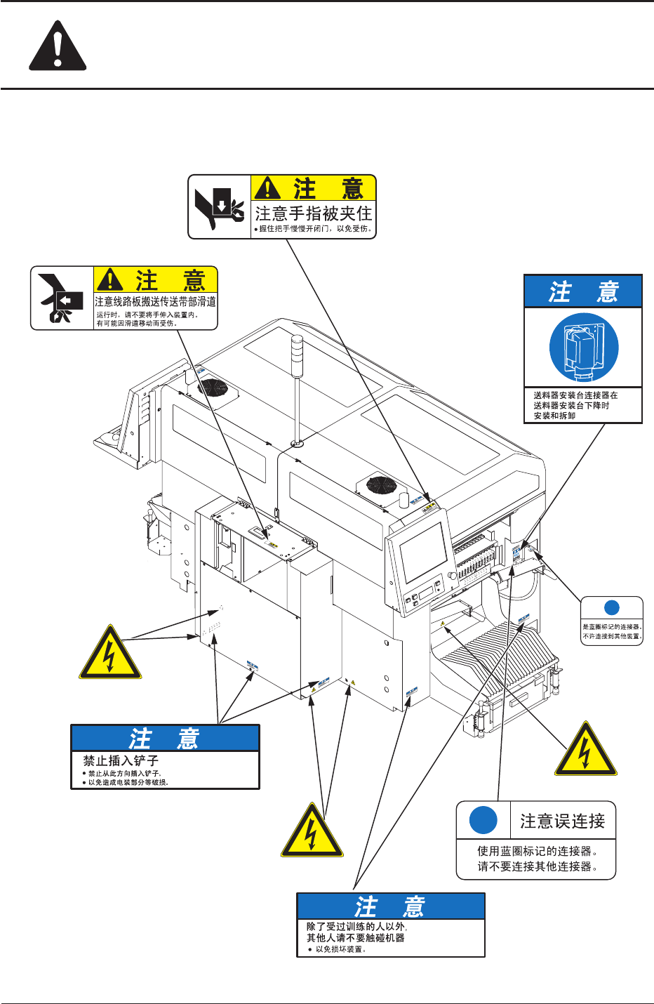 警告标签因破损无法看清楚内容时,请联系本公司服务部门更换新的标签。