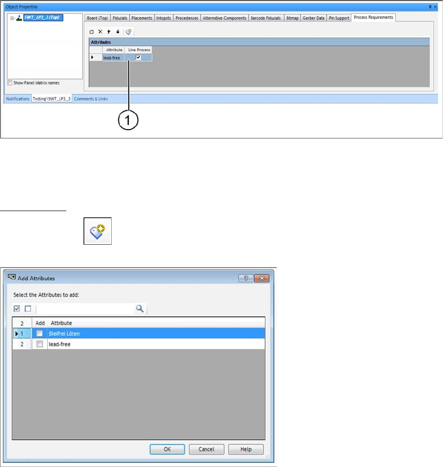 ► Enter the attribute "lead-free" at (1) and enable the checkbox Line Process.