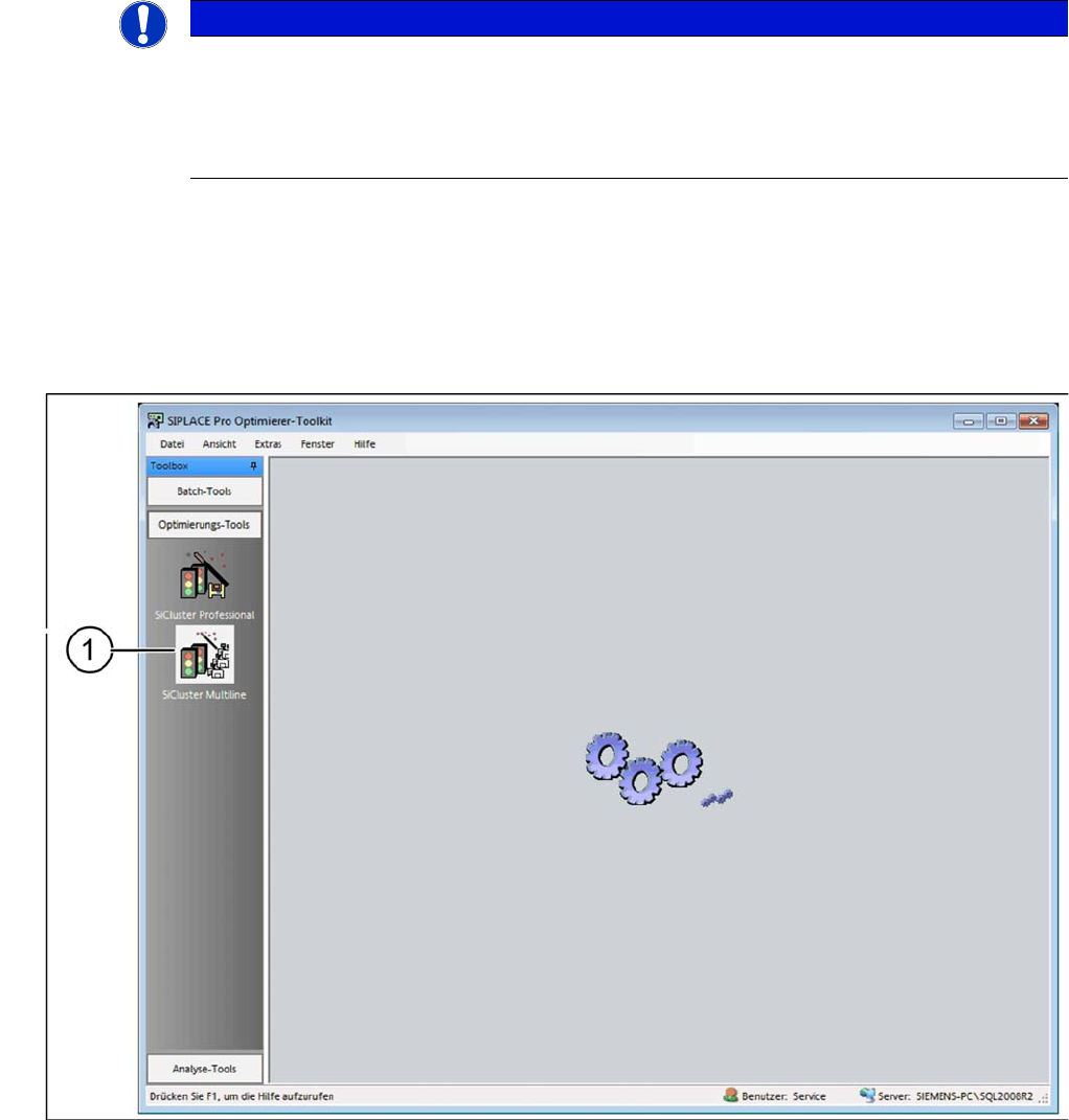Erste Schritte und Übersicht über SiCluster Multiline SiCluster Multiline starten 18 SIPLACE SiCluster Multiline SIPLACE SiCluster Multiline SiCluster Multiline gestartet