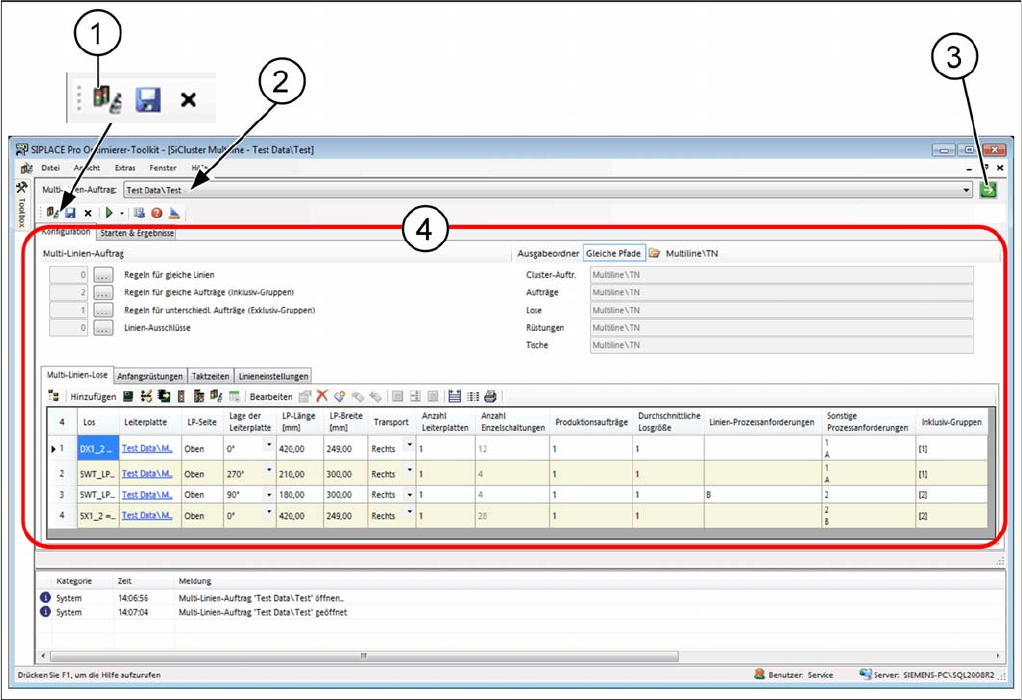2. Name des geöffneten SiCluster Multiline Auftrags