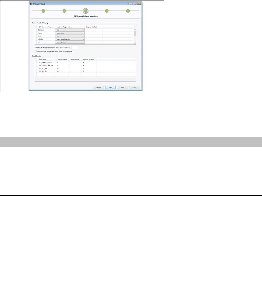 The assignment of column headers enables you to link the table columns of the CSV file with the relevant