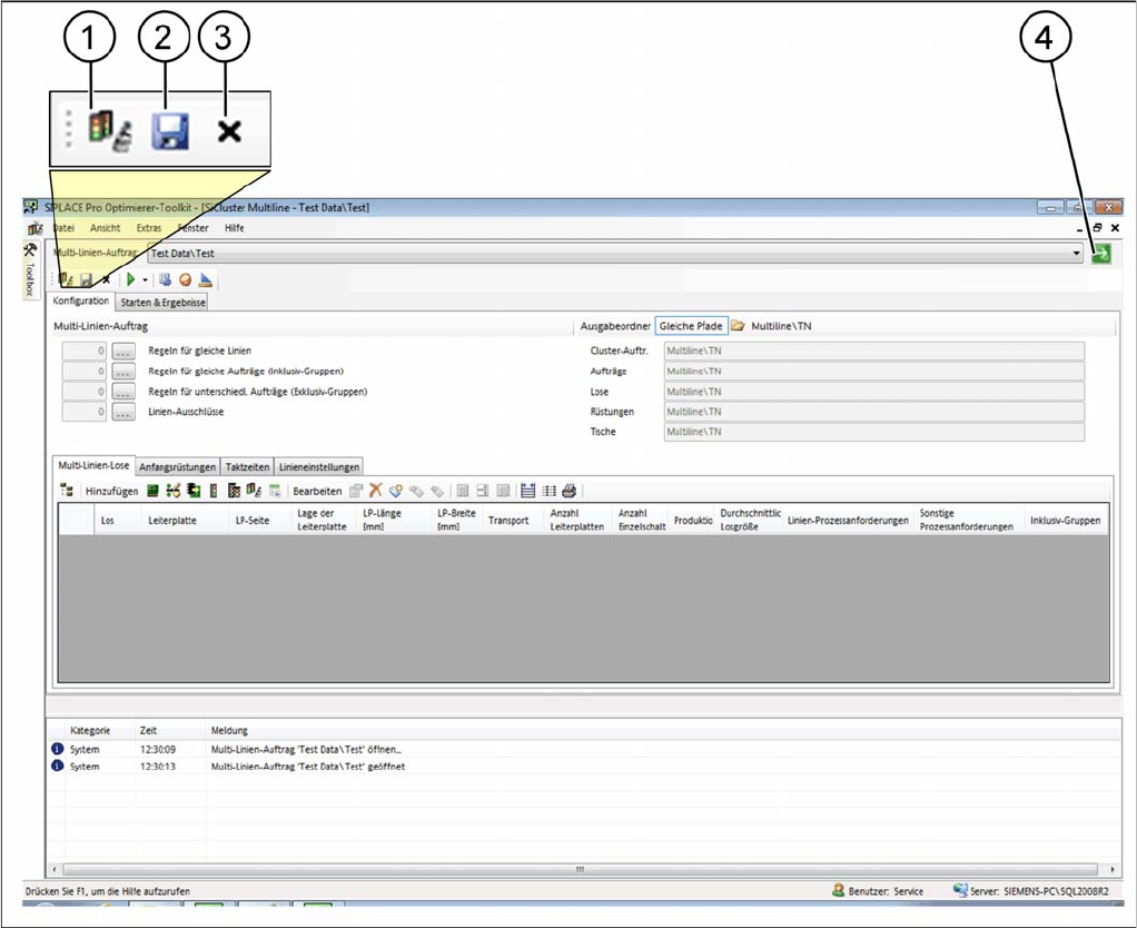 ► Wählen Sie in der Menüleiste von SiCluster Multiline das Symbol (4).
