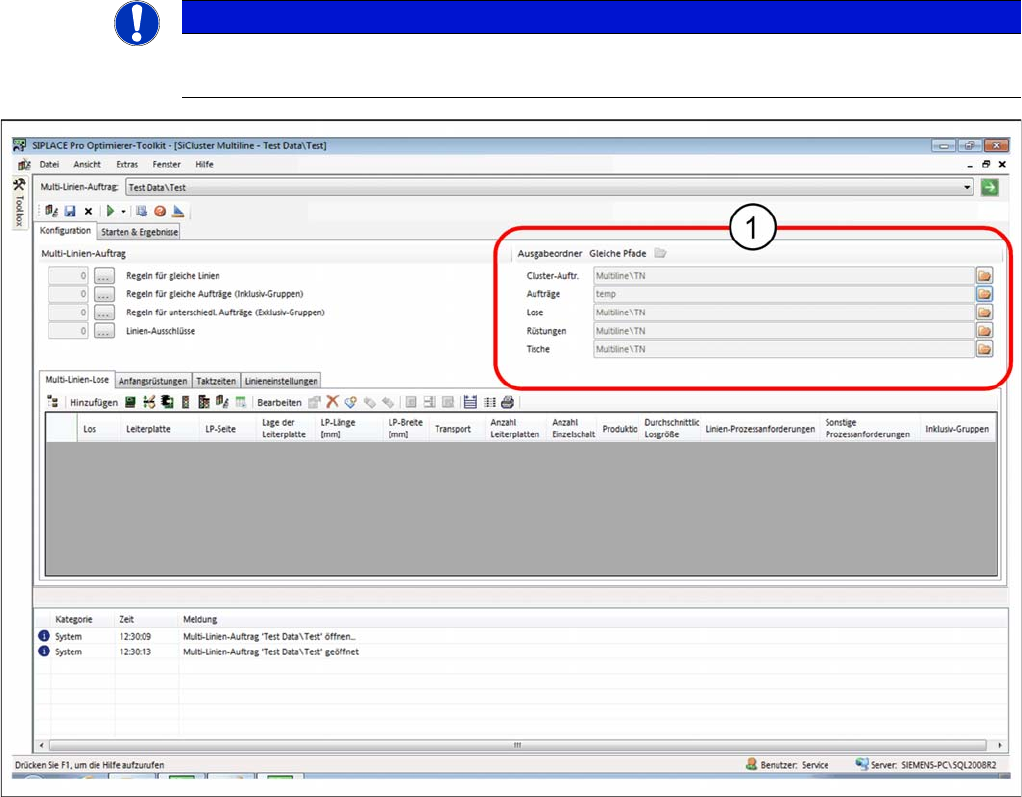 ► Legen Sie unter (1) fest, in welchen Ordnern die Ergebnisse für diesen Multi-Linien-Auftrag gespei-