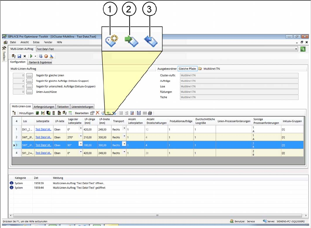 3 Die Prozessanforderungen aus dem Multi-Linien-Auftrag von SiCluster Multiline werden in