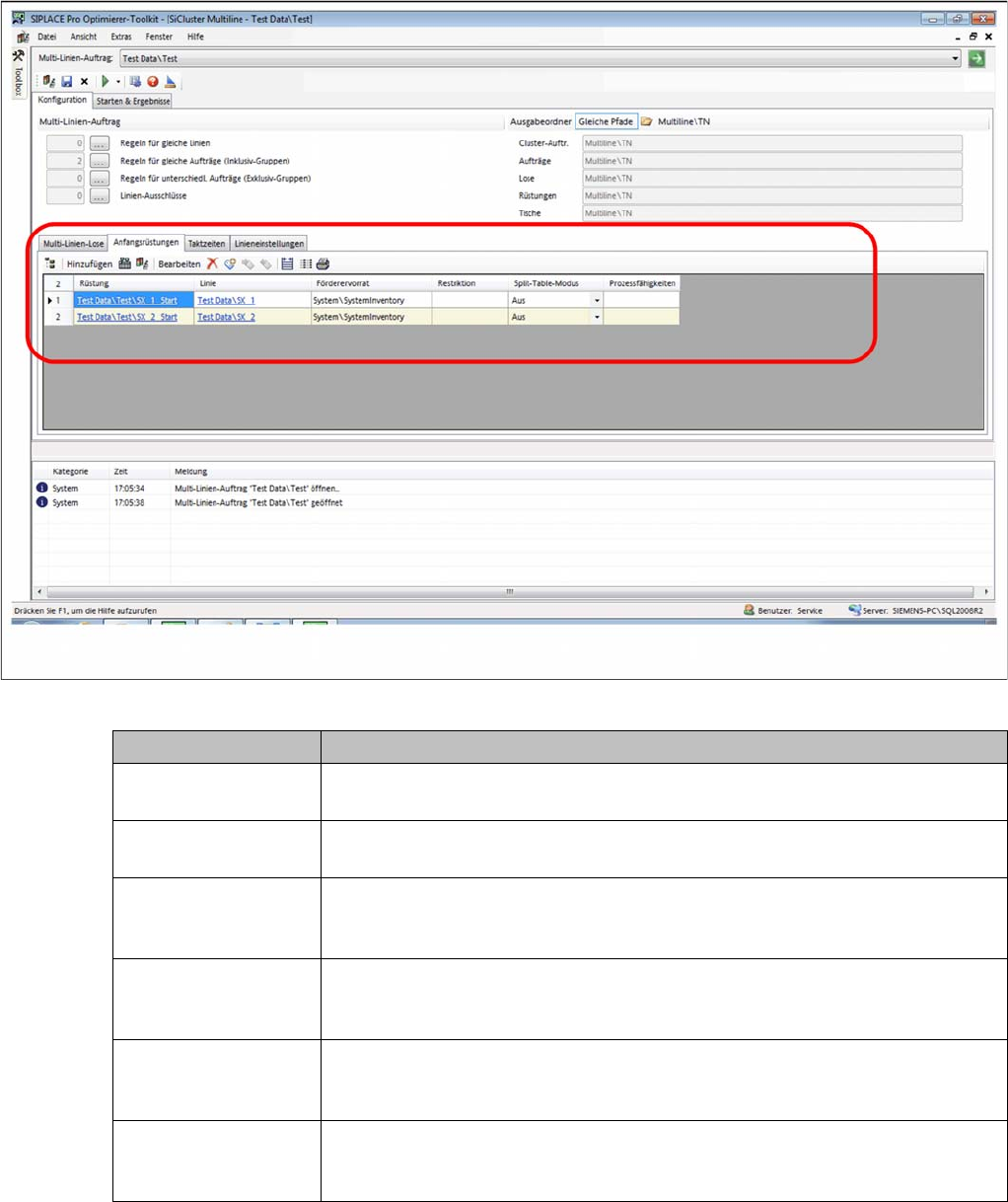 fest, welche Linien im Multi-Linien-Auftrag berücksichtigt werden sollen. SiCluster Multiline verteilt dann