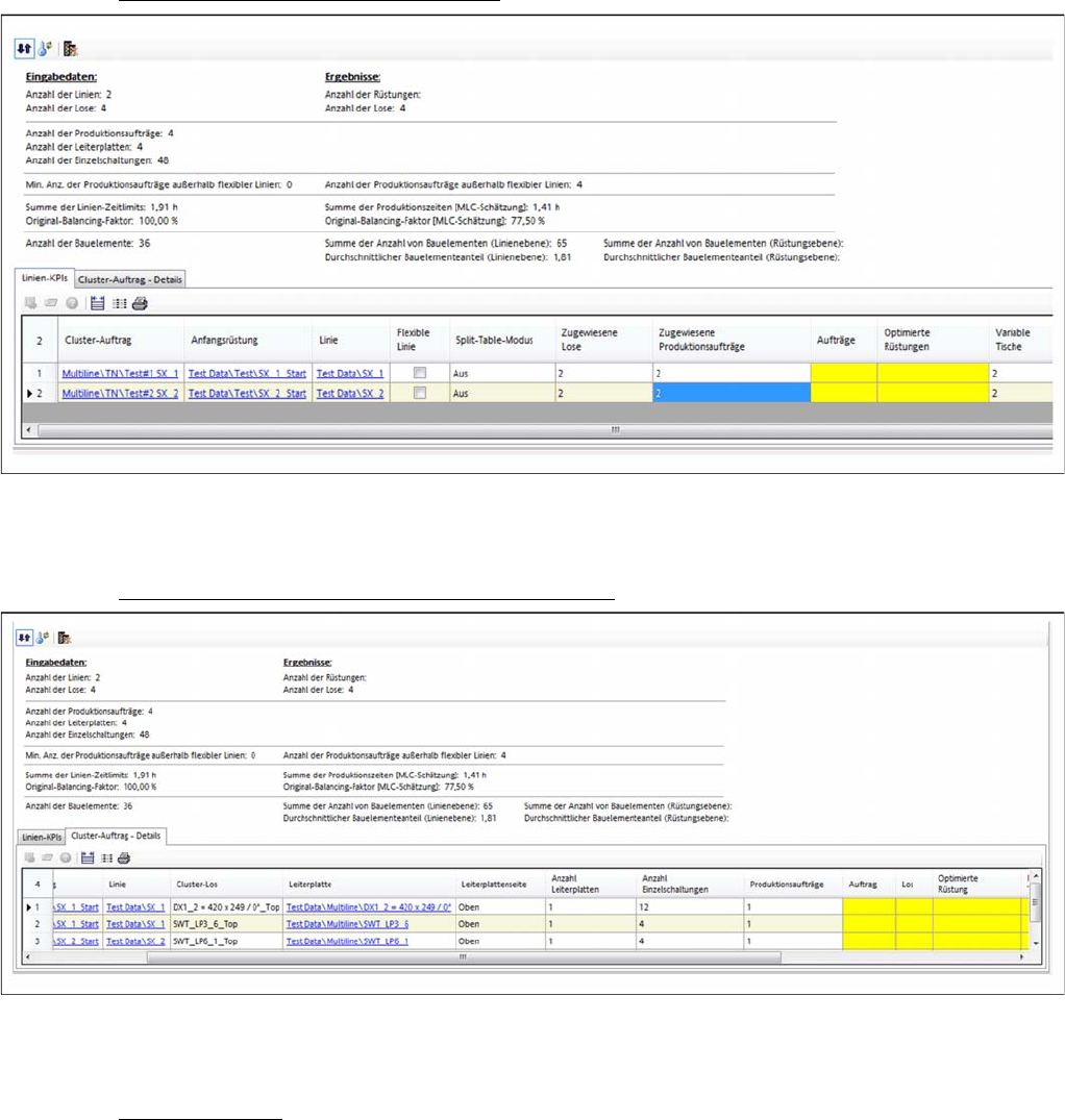 ⇨ Die Ergebnisse werden in den Registerkarten Linien-KPIs und Cluster-Auftrag-Details angezeigt.